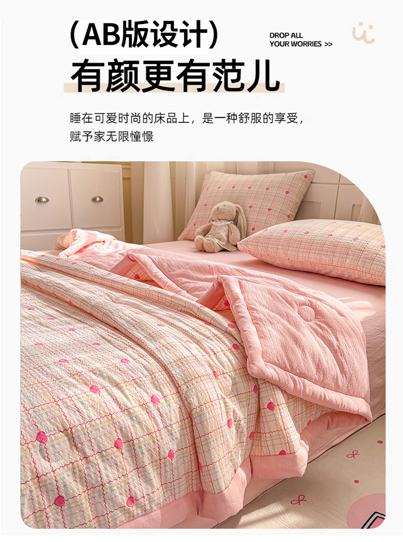 家喜爱 2026年新款双层皱皱纱新疆棉花夏被夏凉被空调被【可开专票 普票】 春日樱桃园