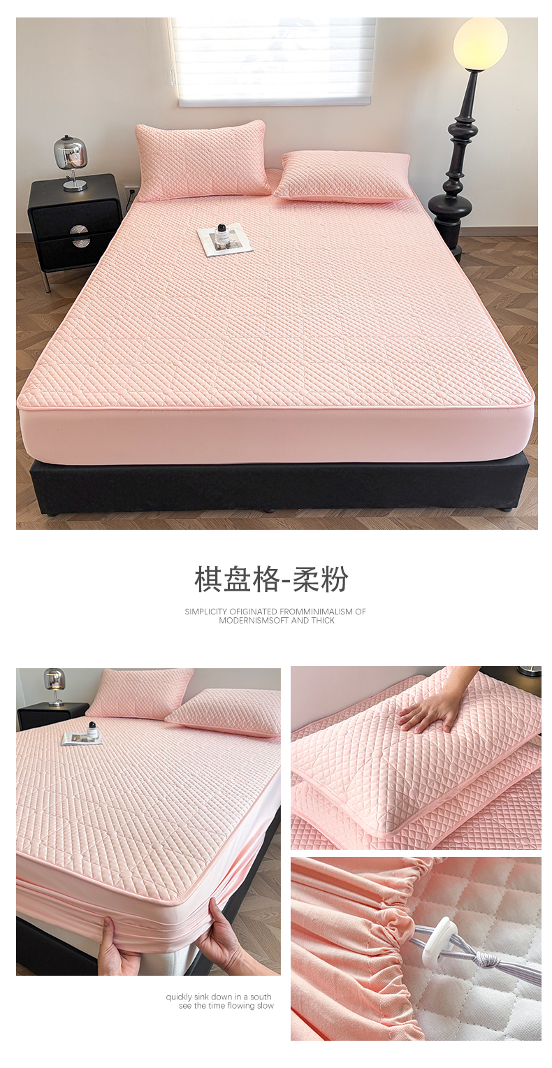 (总)居眠 2025新款防水夹棉床笠-清雅,清雅-粉色,清雅-灰色,清雅-卡其,清雅-绿色,清雅-米白,清雅-深蓝