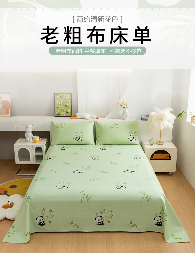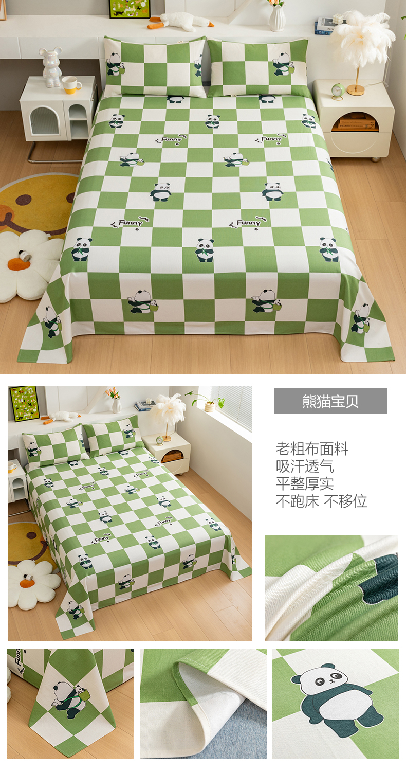 (总)居美良品 2026新款加厚215克老粗布床单卡通花卉可做凉席二三件套,竹趣,爱心花朵,朵朵兔,花园熊,滑板狗,酷酷熊,绿意盎然,莓影缤纷,萌宠乐园,诗意花坊,恬静,童梦乐园,熊猫宝贝,绚丽,幽雅,组合叠拍图仅展示不可下单