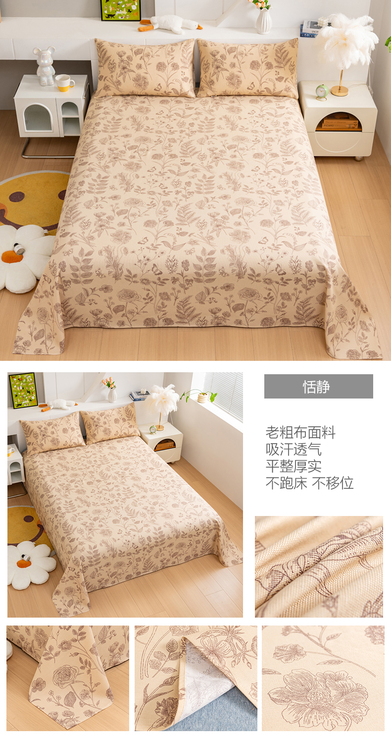 (总)居美良品 2025新款老粗布床单单件老粗布凉席三件套,可爱兔,蓝色花海,浪漫粉,浪漫蓝,条雅樱桃,别具一格,天马行空,初见粉,初见灰,浮光红,浮光绿,清新绿,天空灰,夏日-橙,阳光绿格,阳光蓝格,枇杷印象,沁香花语,青春条纹,布偶熊,彩虹格,草莓兔,芳华绽放,浪漫百合,柠檬-黄,田园小花,幸运-灰