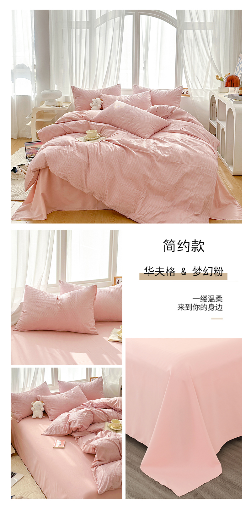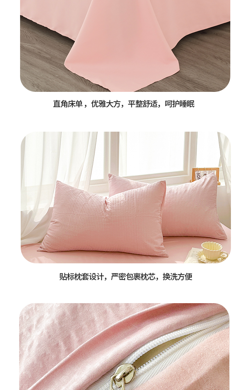 商品名称:啊雅家居 2026新款轻奢韩式花边华夫格四件套-无边款 梦幻粉