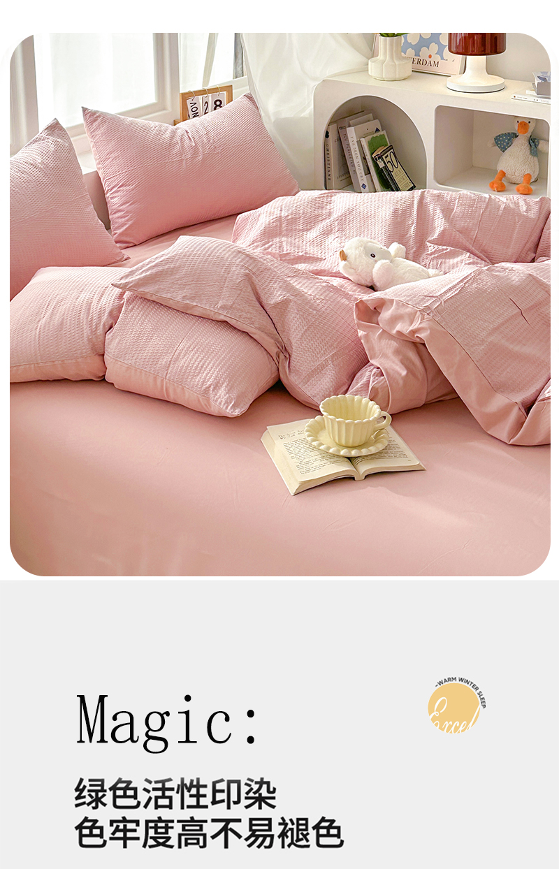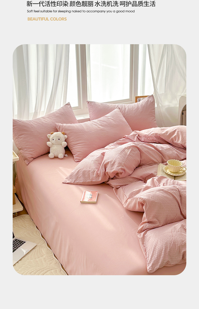 (总)啊雅家居 2026新款轻奢韩式花边华夫格四件套,梦幻粉,梦幻黄,梦幻灰,梦幻兰,梦幻绿