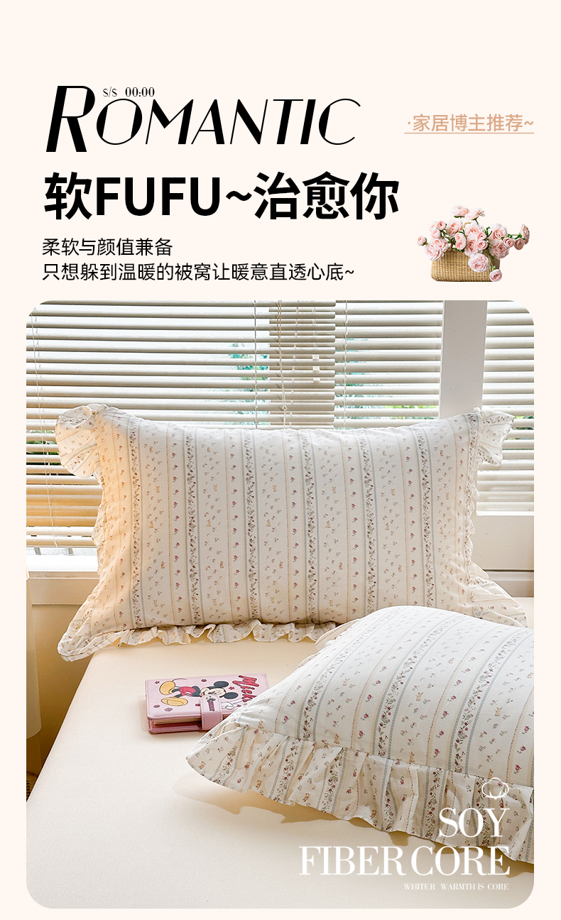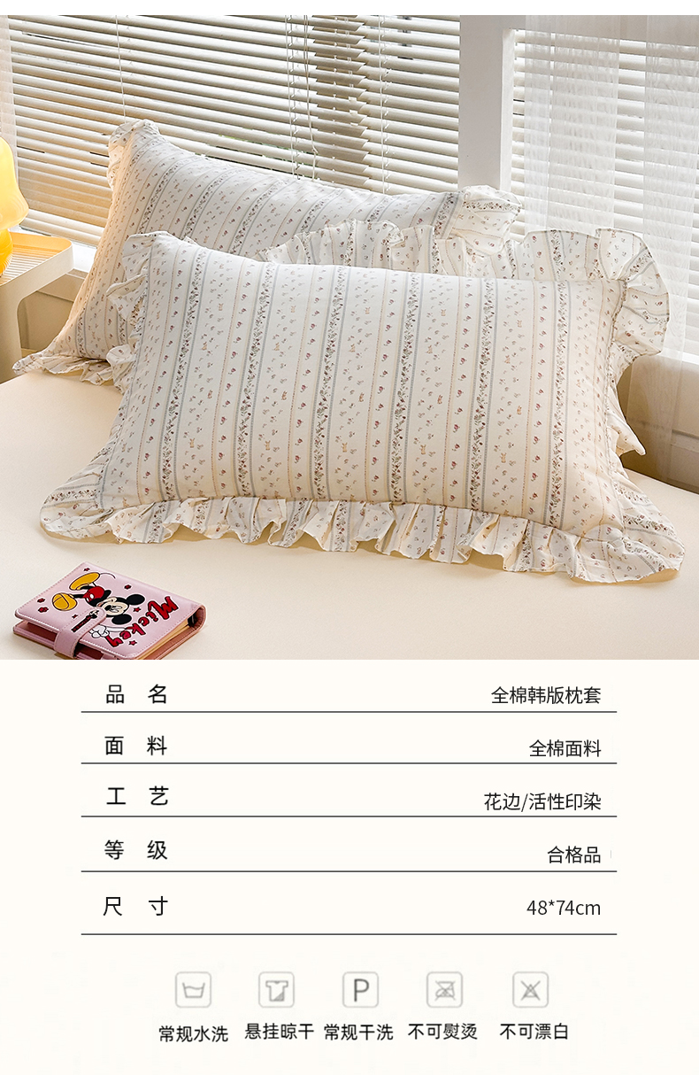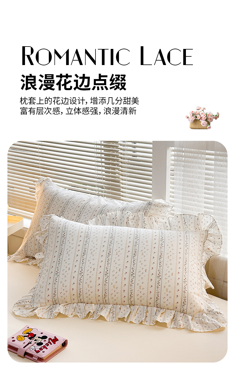 商品名称:忘忧草 2026新款全棉纯棉印花精致花边枕套单枕套 枕套单件 蔷薇花影