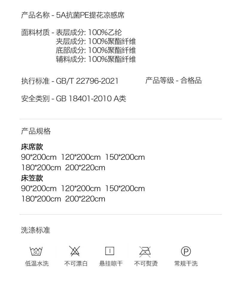 150x200cm单凉席+枕套一对 | ¥95.00 |