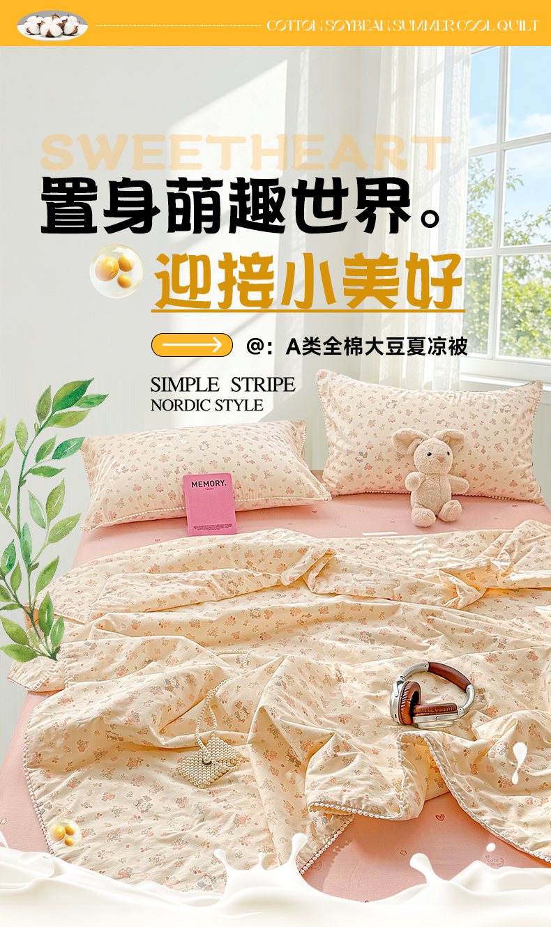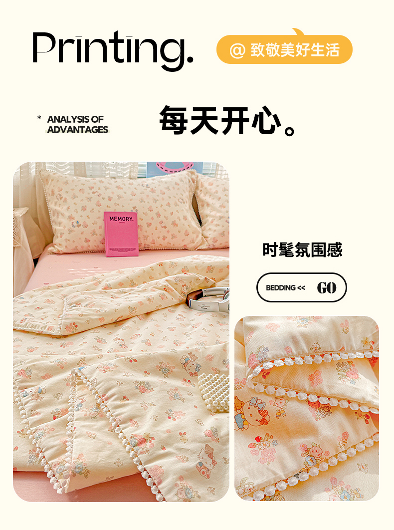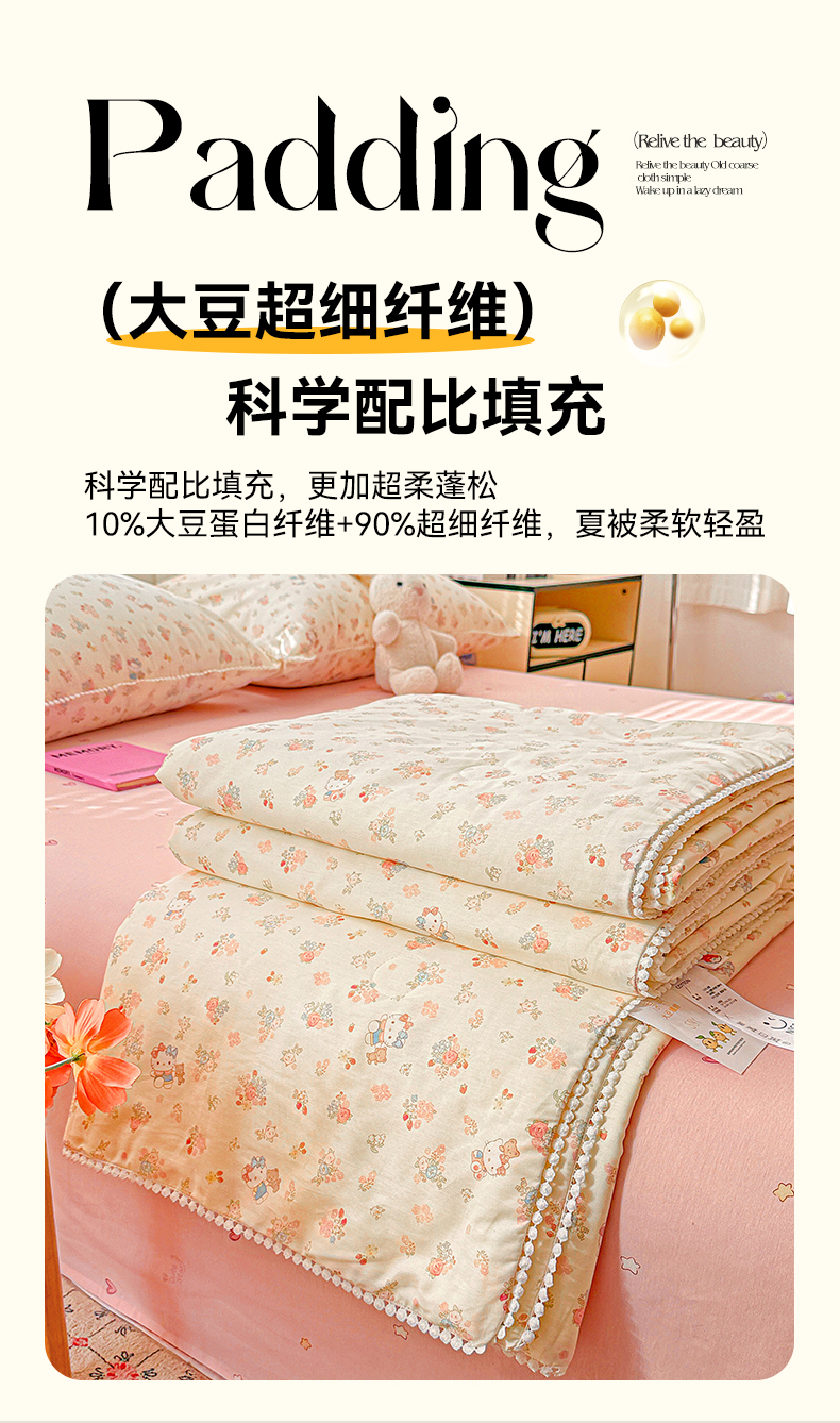 (总)优被业 2025新款A类全棉小清新大豆夏被,KT猫,宁夏,小夜猫,小迷糊,快乐小狗,泡泡糖,草莓园,集美