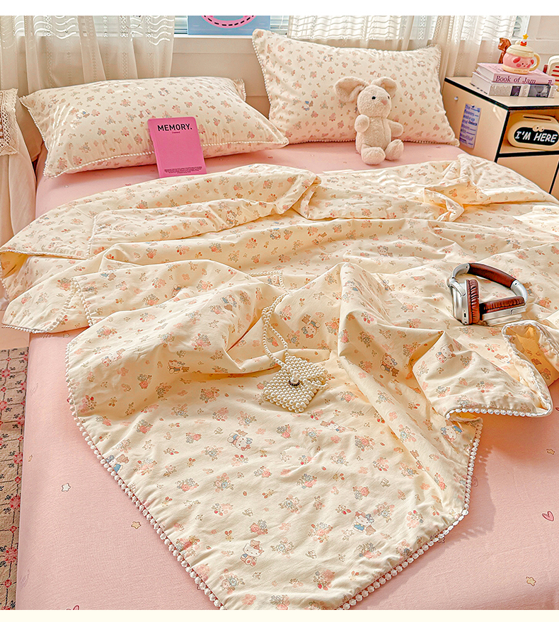 • 91家纺网 家纺一手货源 找家纺 优被业 2026新款全棉韩式小球球款大豆夏被,夏被四件套,空调被(加微信送买家秀) 粉花KT