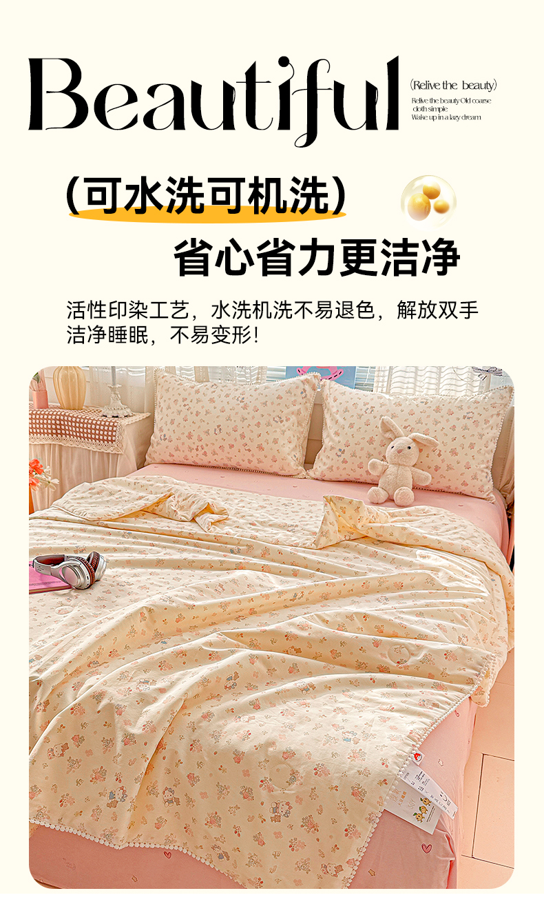 (总)优被业 2025新款全棉双层纱皱皱纱夏被,南瓜熊猫,宠物乐园,小爱心,爱心熊,花语,花馨,蘑菇小兔