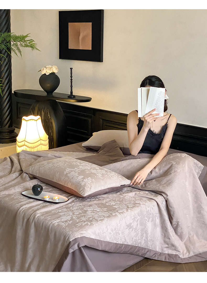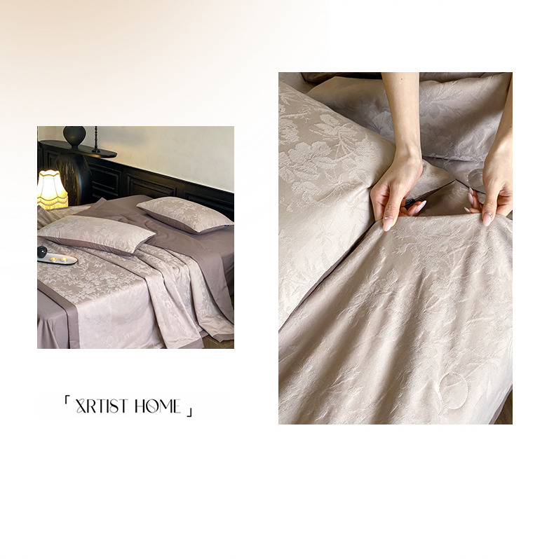 (总)宜代光年 2026新款亚麻大提花贡缎磨毛四件套系列 侘寂风花型系列,斑驳-米麻,观花芷-米麻,观花芷-银灰,清玉絮-葡萄紫,清玉絮-鲜蓝,素简