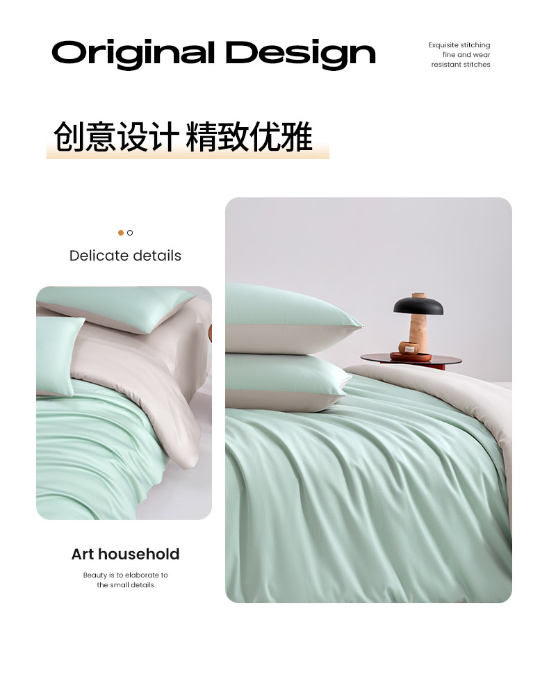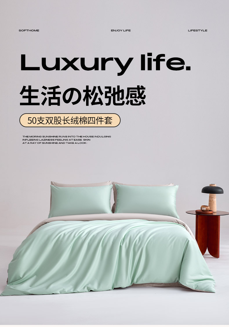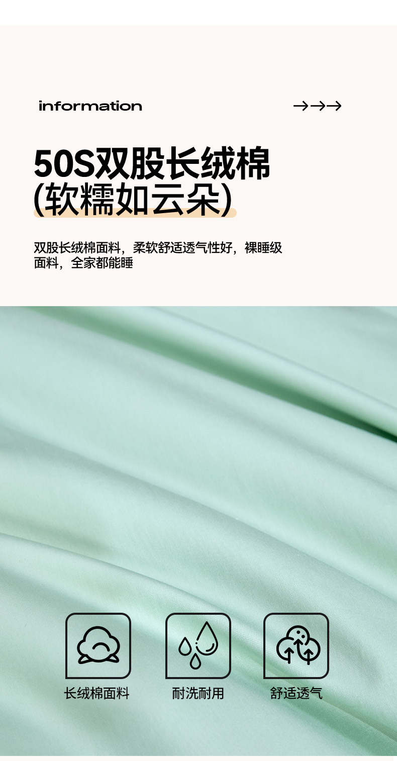 商品名称:合欢(原天一阁) 2026新款50s双股长绒棉全棉纯棉纯色四件套 青柠绿+银竹灰