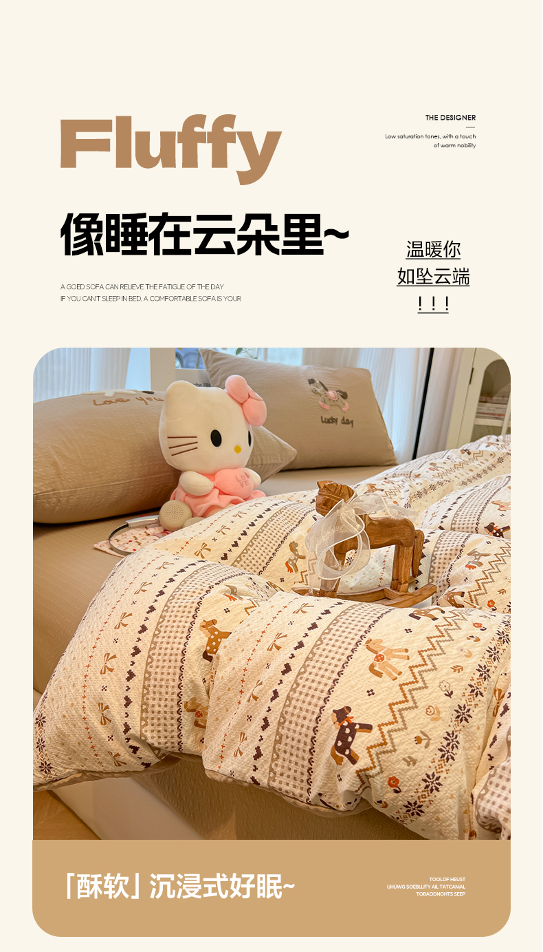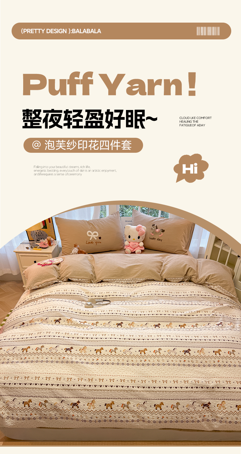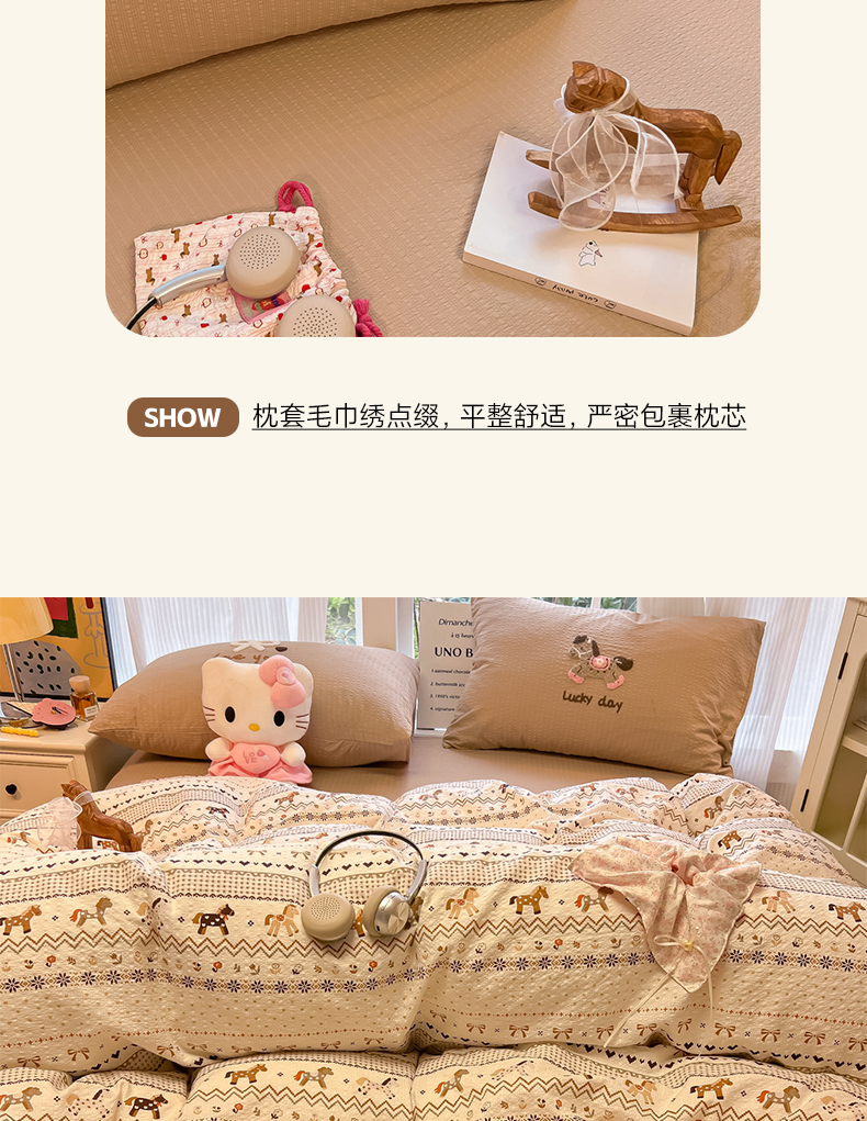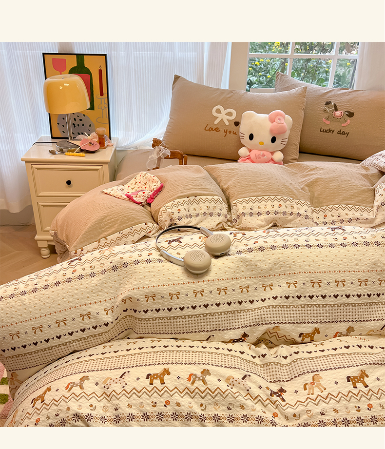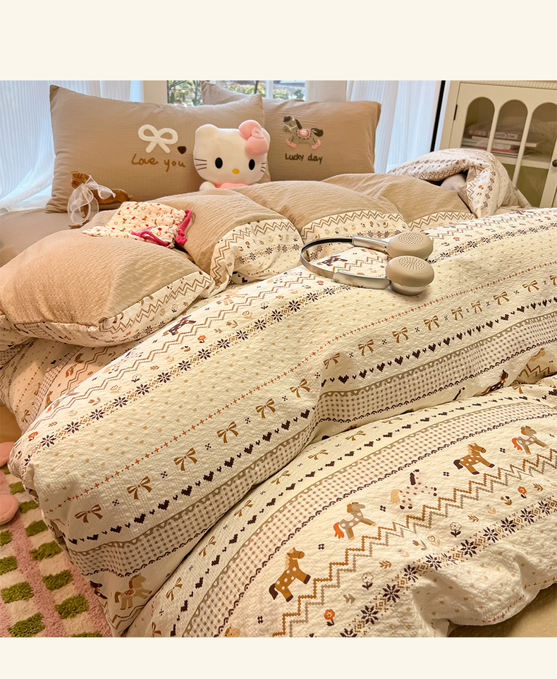当前位置: 91家纺网 > 商品网购 > 床品套件 > 四件套 > 毛巾绣四件套 > 韩巢家纺 2026新款泡芙纱费尔岛毛巾绣四件套 栗色木马纹-毛巾绣