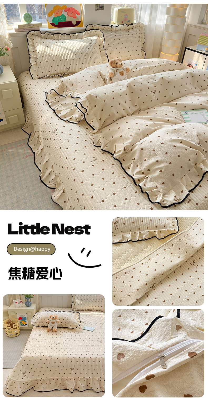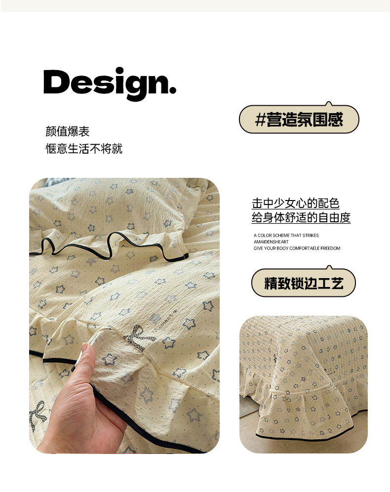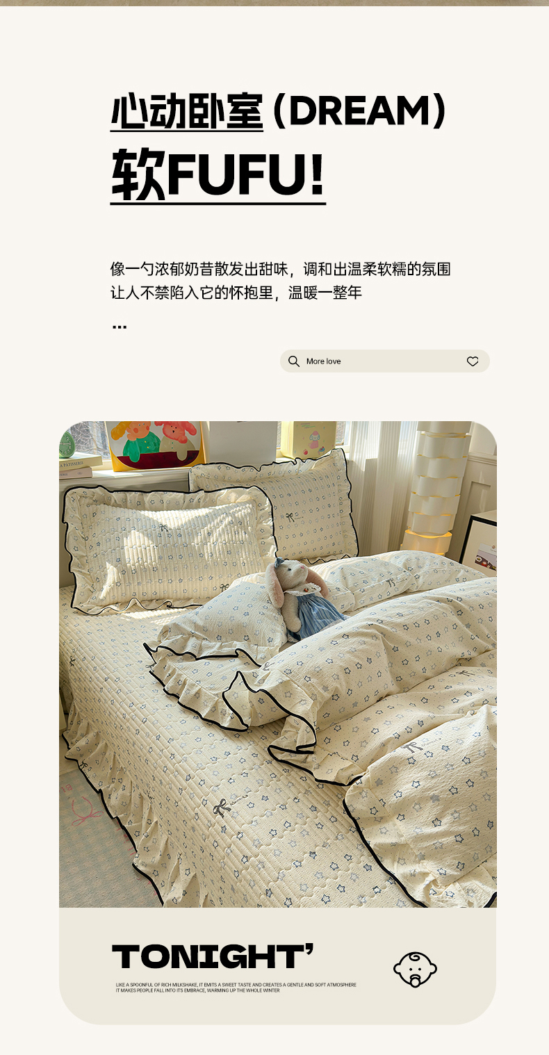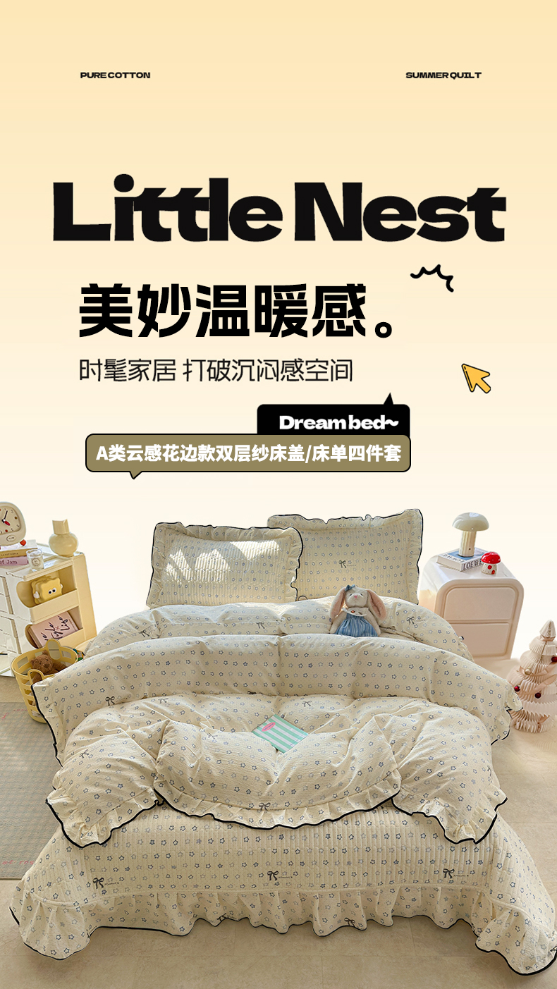 当前位置: 91家纺网 > 商品网购 > 床品套件 > 四件套 > 其它四件套 > 壹和 2026新款A类云感花边款双层纱床盖款和床单款四件套单床盖单被套 满天星