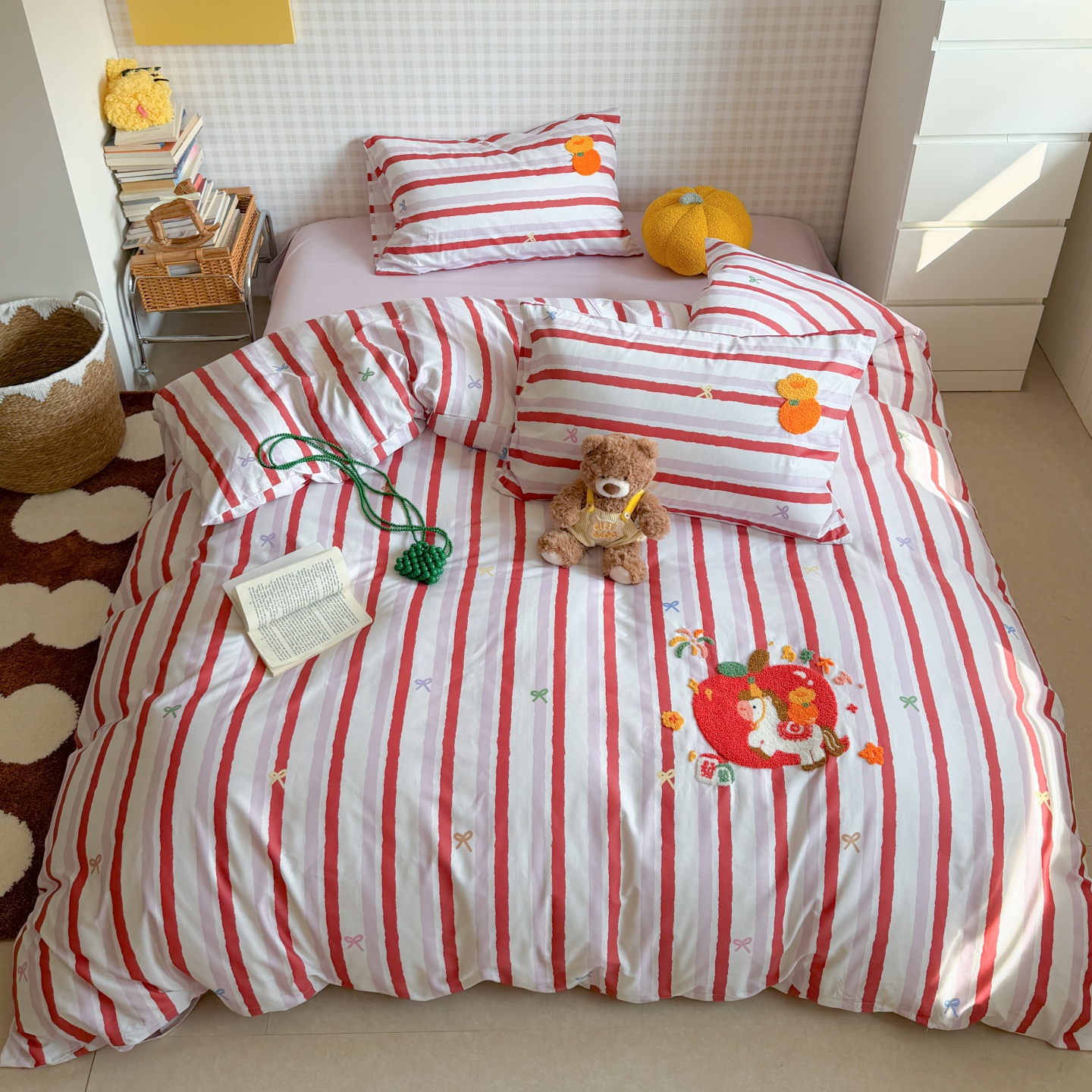 当前位置: 91家纺网 > 商品网购 > 床品套件 > 四件套 > 全棉普通四件套 > 觅糖家纺 2026春夏新款全棉纯棉卡通毛巾绣系列四件套 苹果小狗