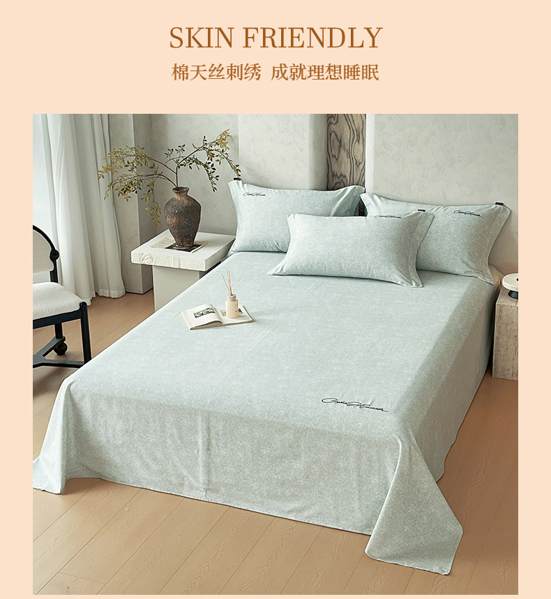 商品名称:春皖家纺 2026春夏新款天丝棉刺绣单床单 床单单件 曼妮-绿萝纱
