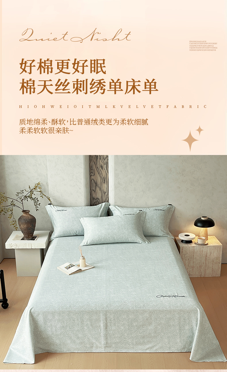 (总)春皖家纺 2026春夏新款天丝棉刺绣单床单 床单单件,宝绮蓝,亮绮黄,曼妮-贝壳色,曼妮-绿萝纱,曼妮-云褐色,曼妮-紫,苔绮绿,钛绮灰,樱绮丝