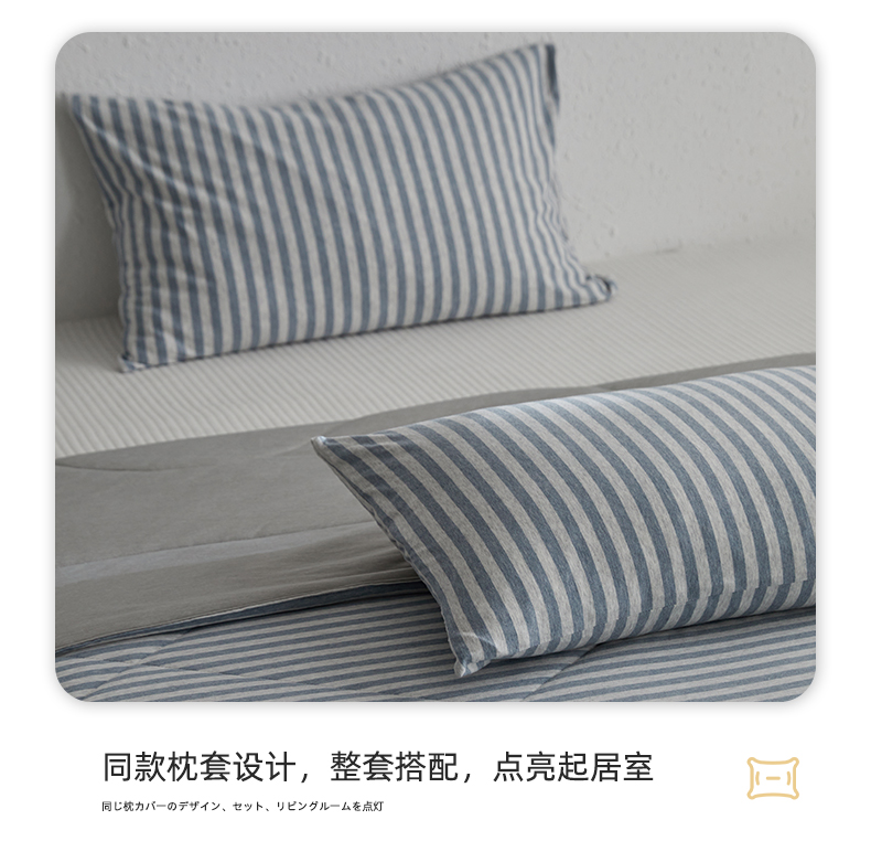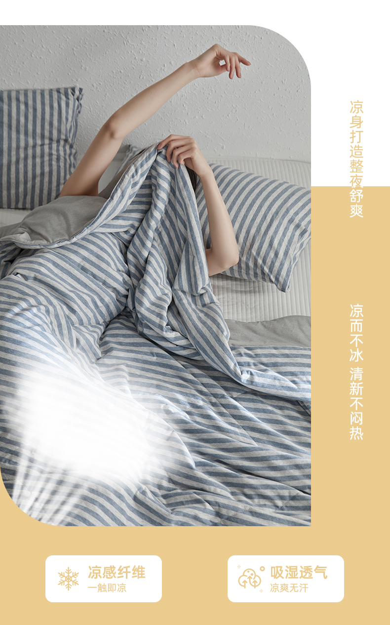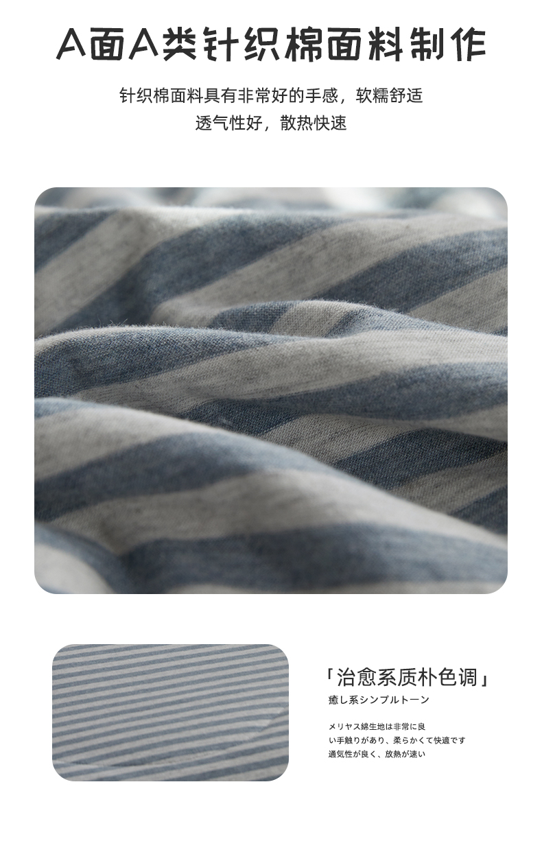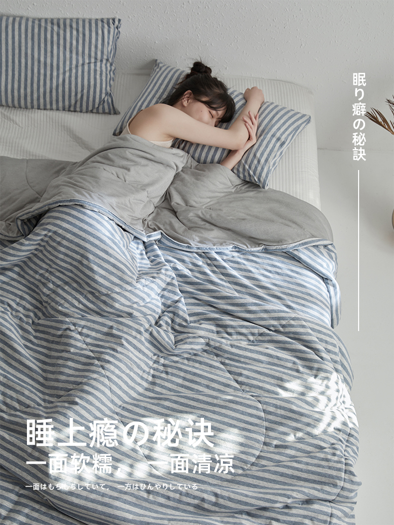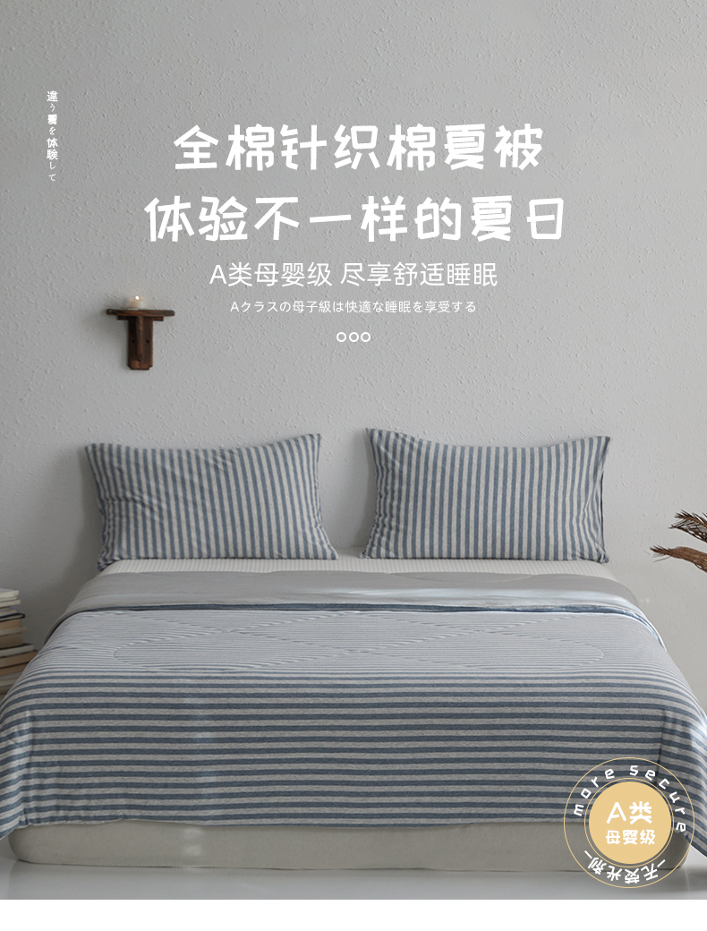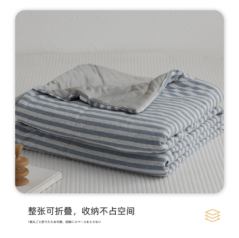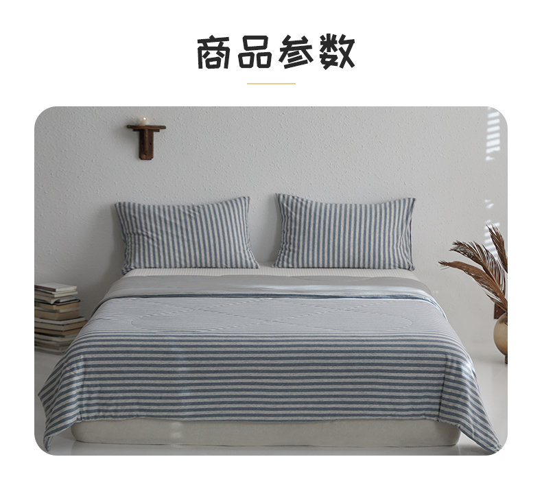 商品名称:春皖家纺 (提供买家秀)2026新款A类全棉针织凉感夏被 烟蓝中条