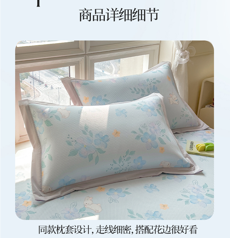 商品名称:莱家富 2026新款夏季花卉冰丝床裙席单件夏天冰豆豆A类可机洗学生宿舍空调软席 印花床笠席-花知晓