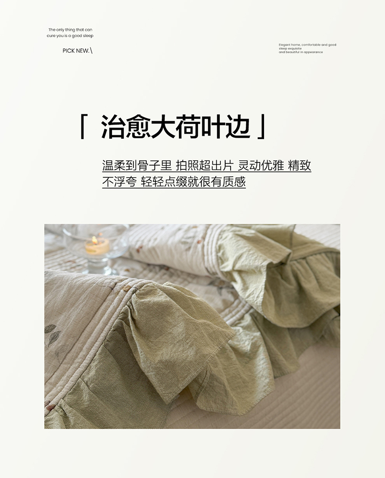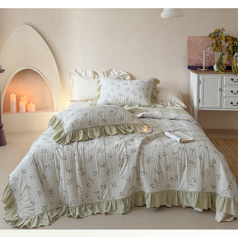 漫调家纺 2026春夏新品双面棉麻法式荷叶边高温水洗夏被可配夏被四件套床单床盖四件套 青枝野果