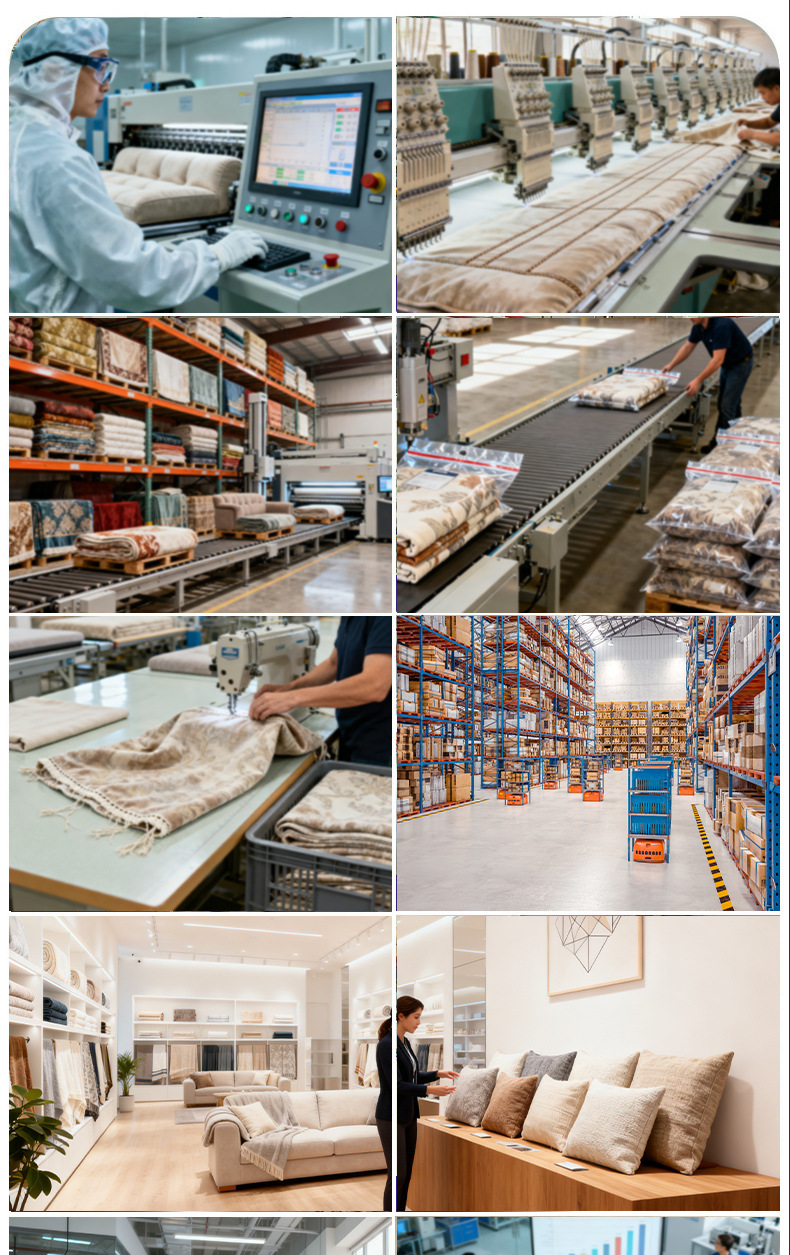 云仓服务5:享新品爆款推荐,1V1好货推荐官,联合家纺城供应商直播,0元拿样,低价拿货;