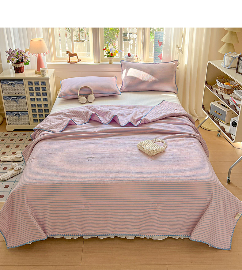 商品名称:鑫利来家纺 2026新款日系多巴胺皱皱纱贝壳绣夏被夏凉被空调被 海盐-紫