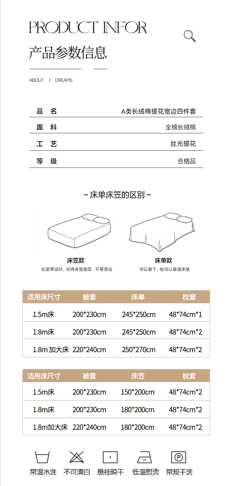 被套200*230cm 床笠180*200 枕套48*74*2 | ¥270.00 |