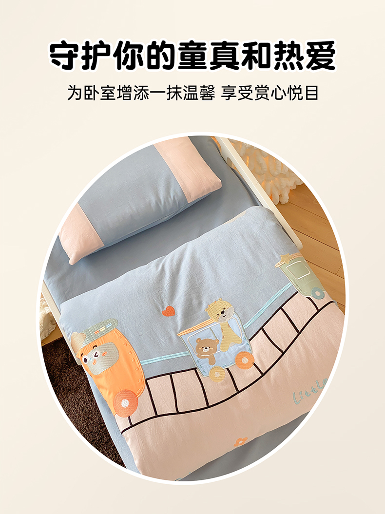 当前位置: 91家纺网 > 商品网购 > 床品套件 > 四件套 > 全棉普通四件套 > 宝贝优选 2026新款全棉水洗棉幼儿园学生三件套多件套 律动工程车