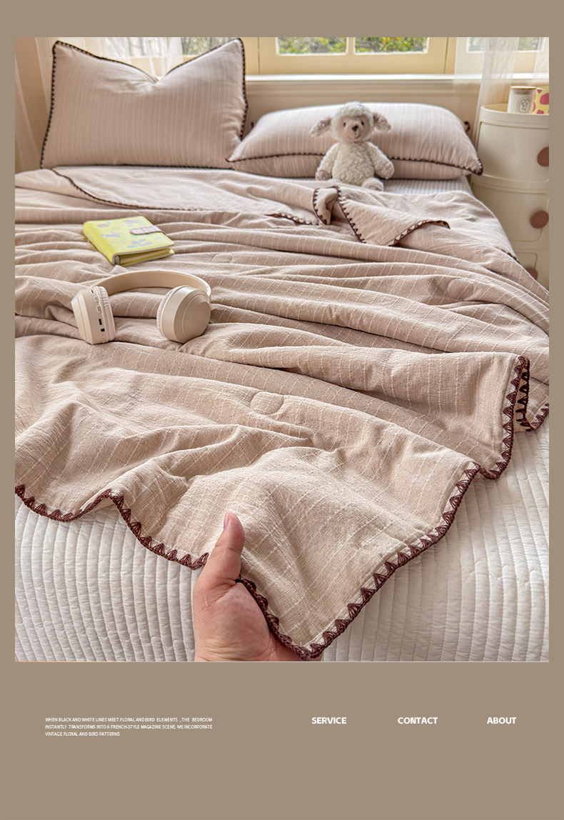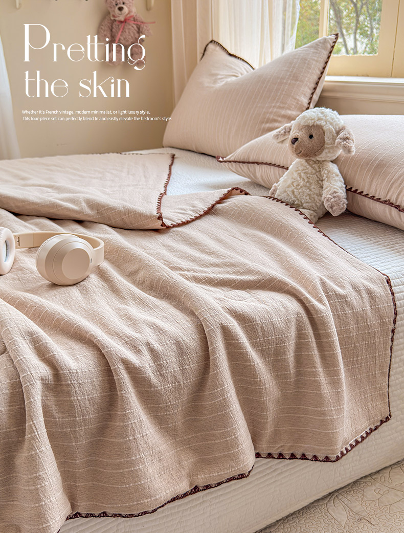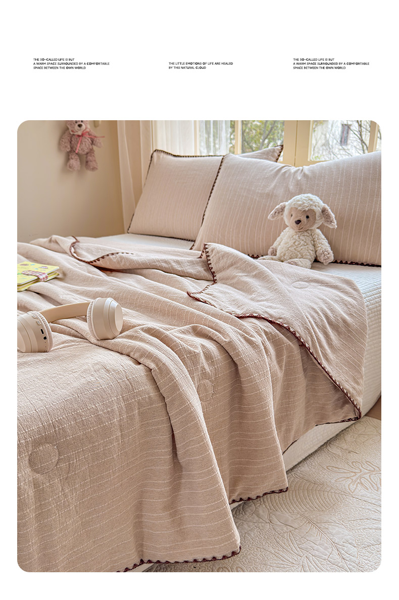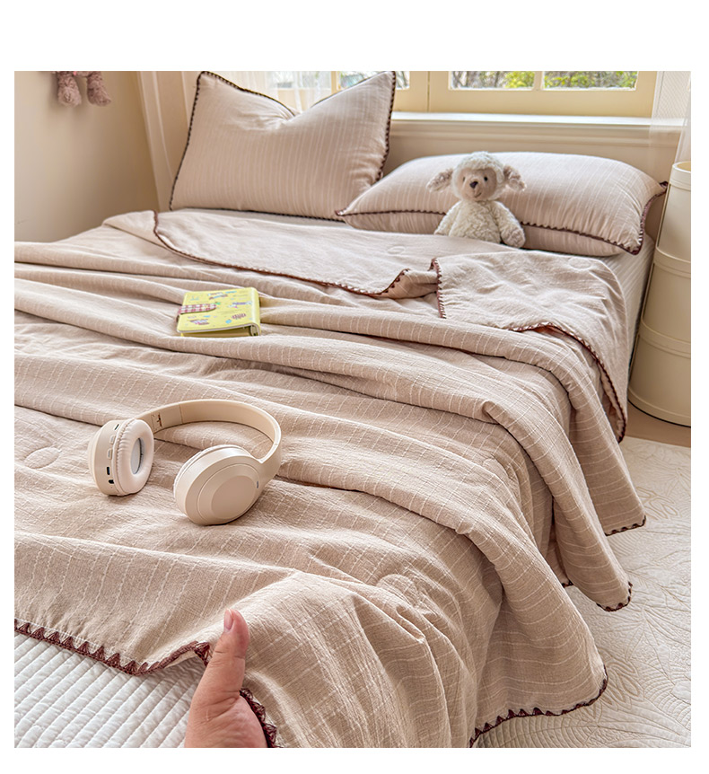 被子 > 夏被 > 鑫利来家纺 2026新款纯色无印风夏被简约素色法式麻夏凉被阳离子色织提花单人双人学生夏凉被-场景二 组合(仅参考)