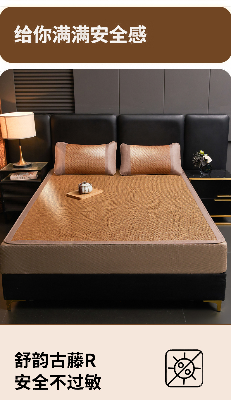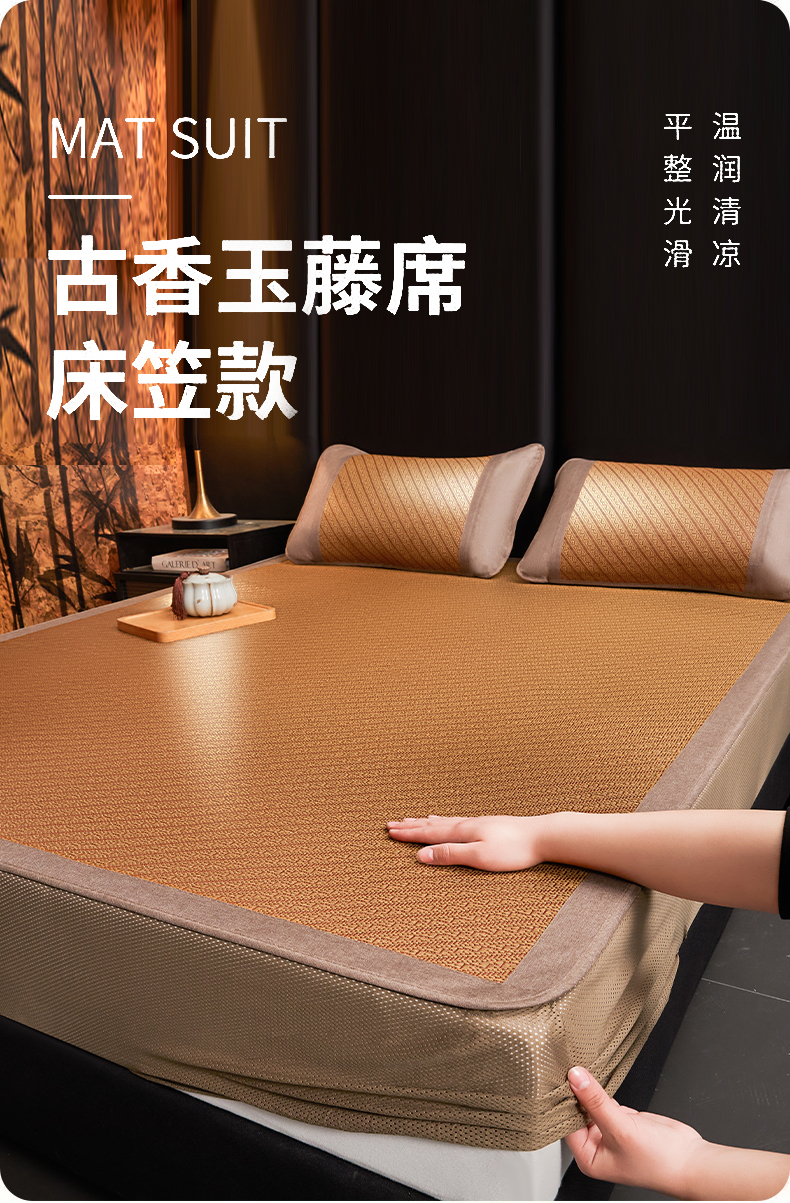 当前位置: 91家纺网 > 商品网购 > 床上用品 > 凉席 > 藤席 > 绒艺席业 2026新款加密古香玉床笠款藤席凉席席子 藤悦