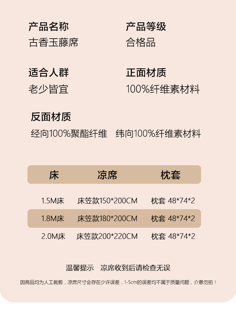 180x200cm凉席+枕套一对 | ¥76.00 |