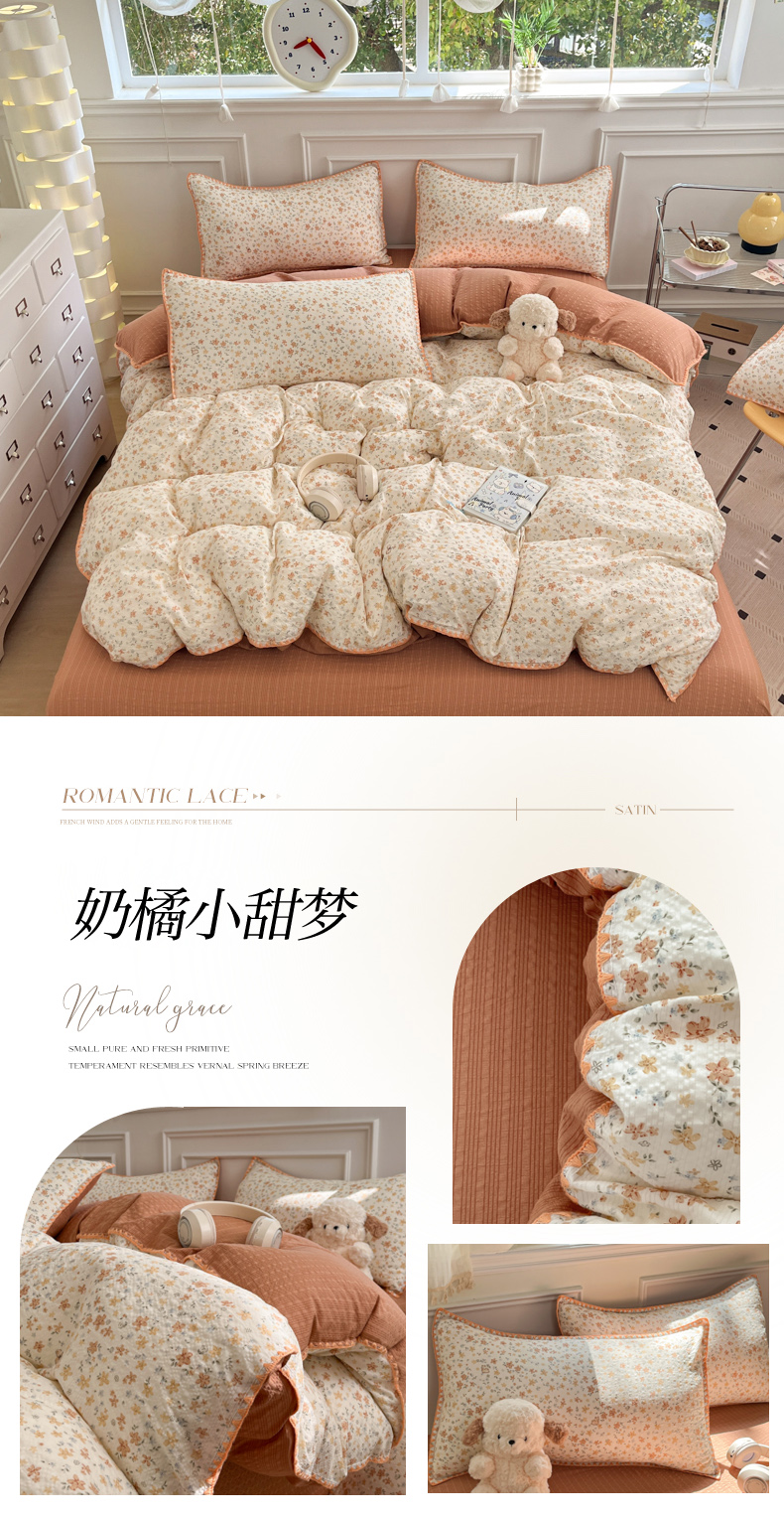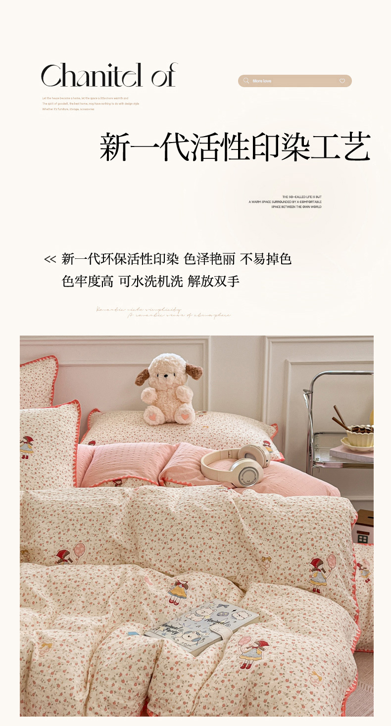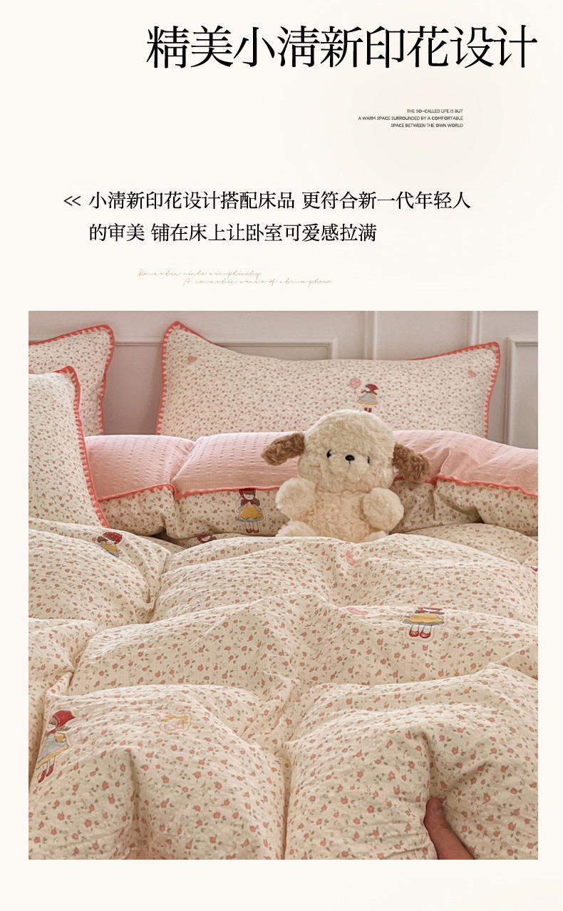 当前位置: 91家纺网 > 商品网购 > 床品套件 > 四件套 > 其它四件套 > 慕澄家纺 2026新款小清新印花泡芙纱贝壳边四件套 少女花田