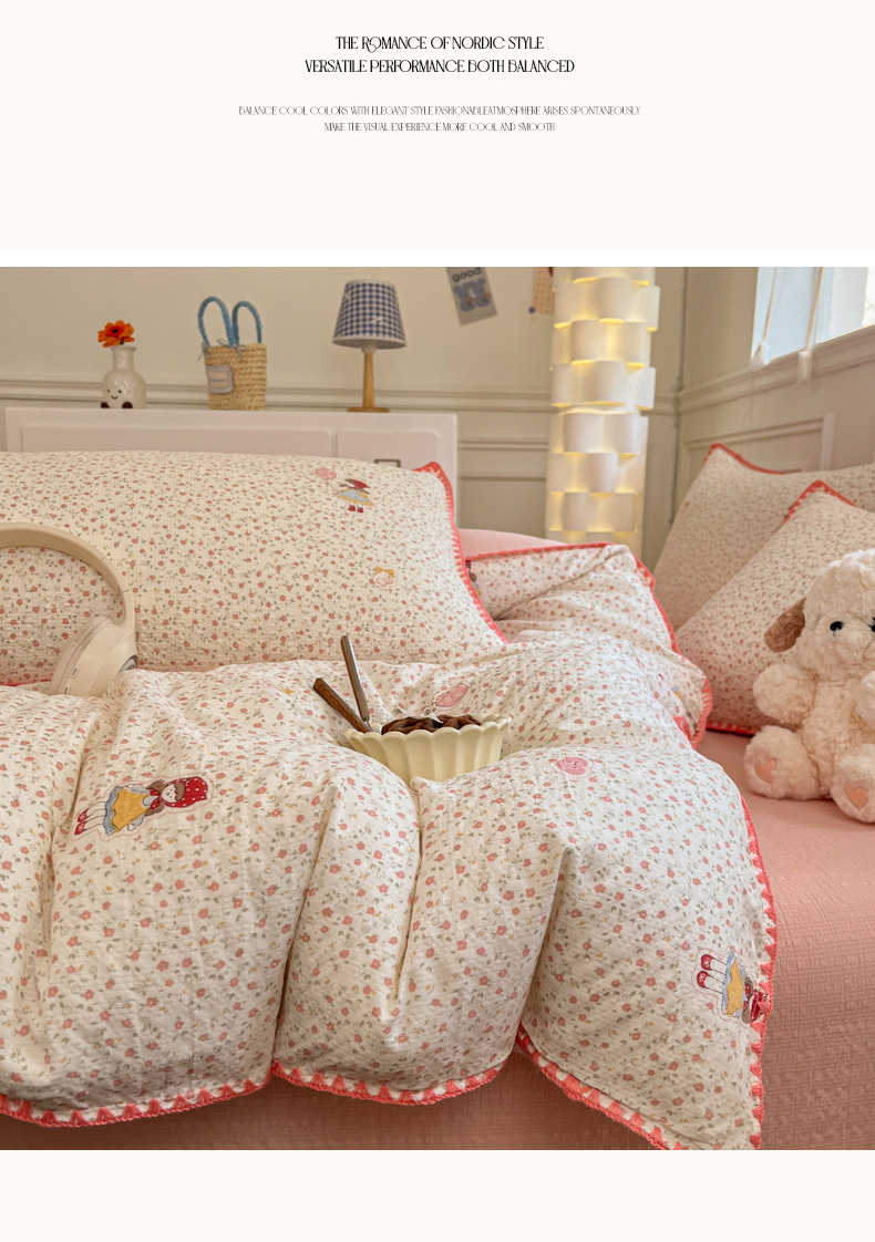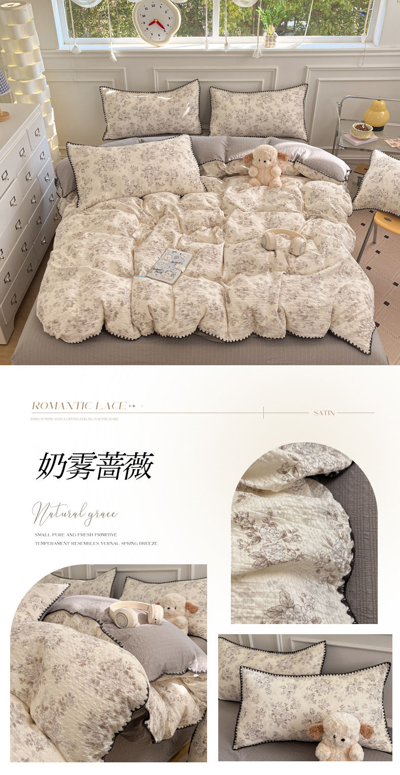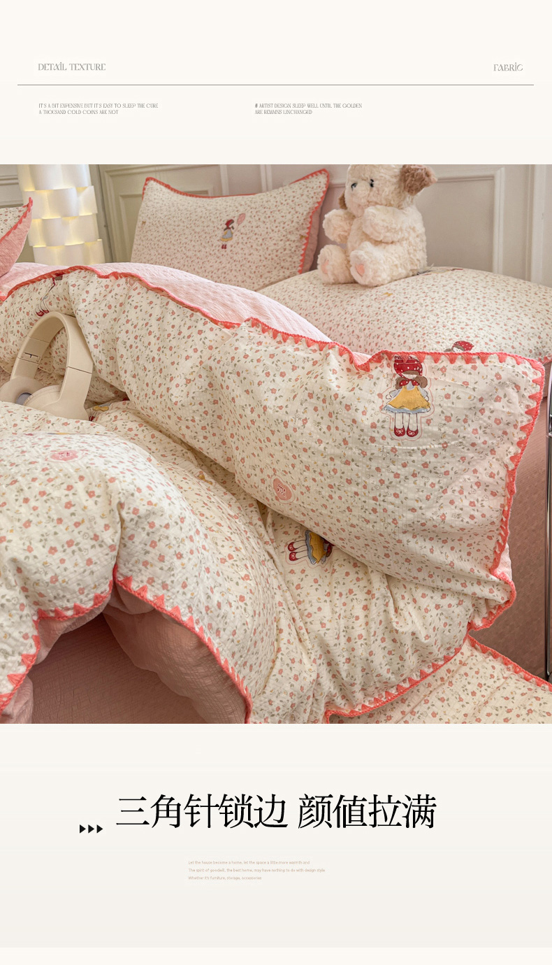 当前位置: 91家纺网 > 商品网购 > 床品套件 > 四件套 > 其它四件套 > 慕澄家纺 2026新款小清新印花泡芙纱贝壳边四件套 少女花田