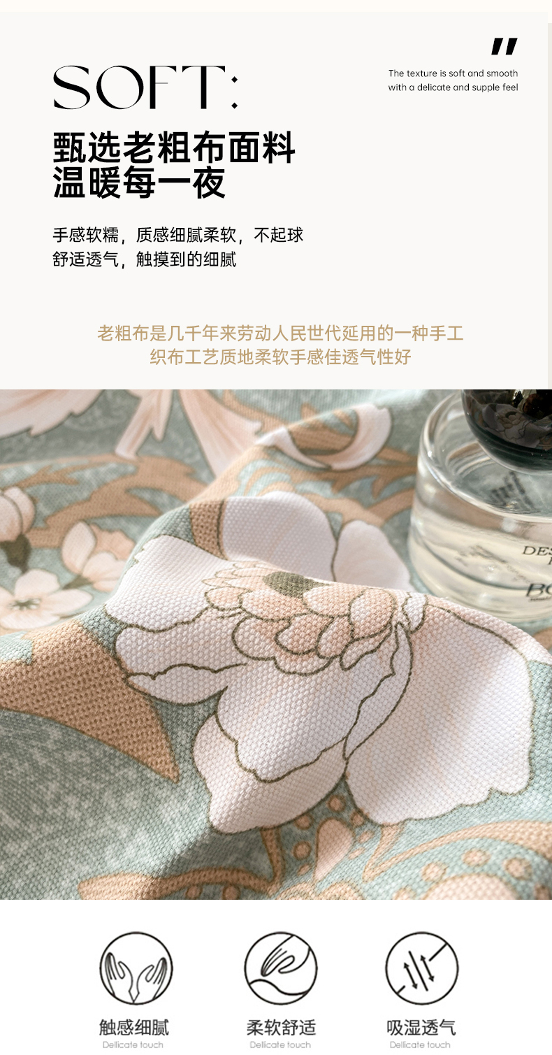 漫仙阁家纺 2026新款老粗布床单系列 花开富贵