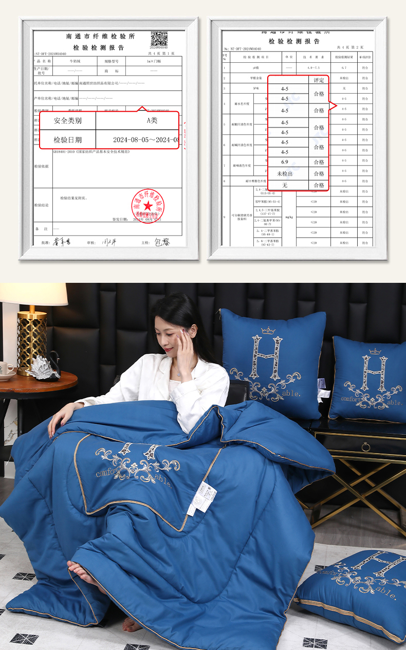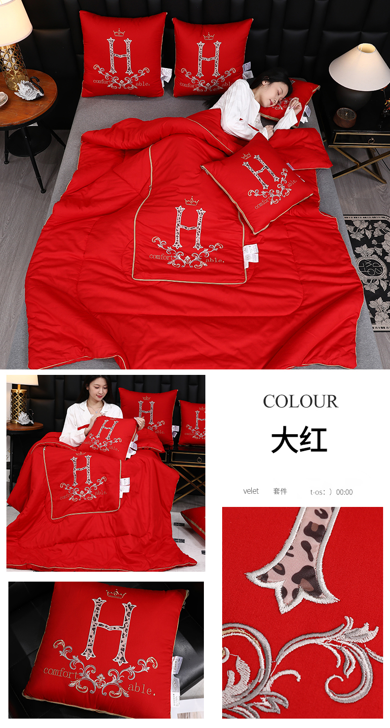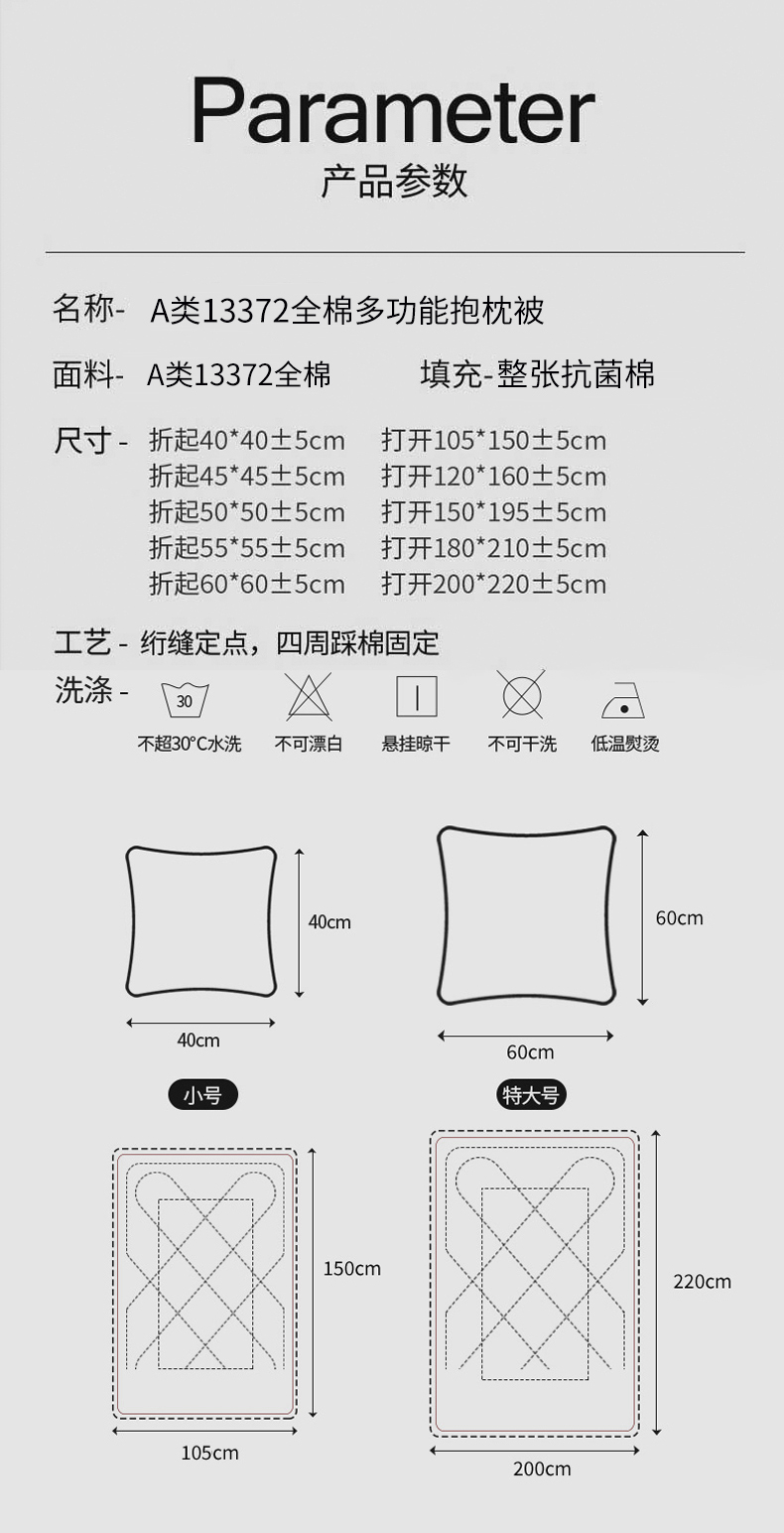 (总)照世家纺 2026新款全棉安逸H款抱枕被,孔雀蓝,咖色,深灰,浅灰,大红