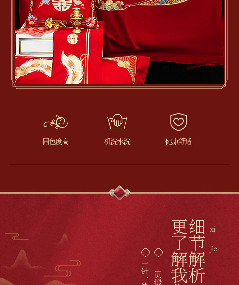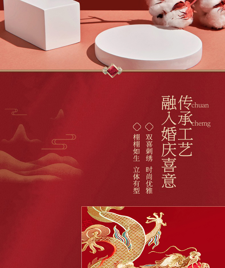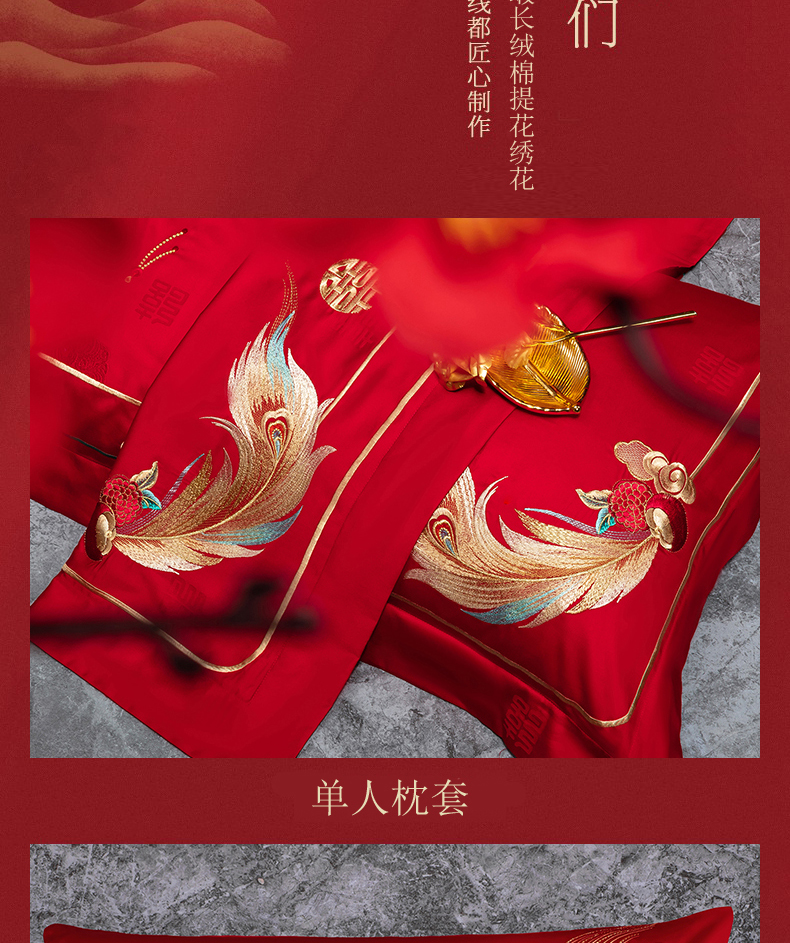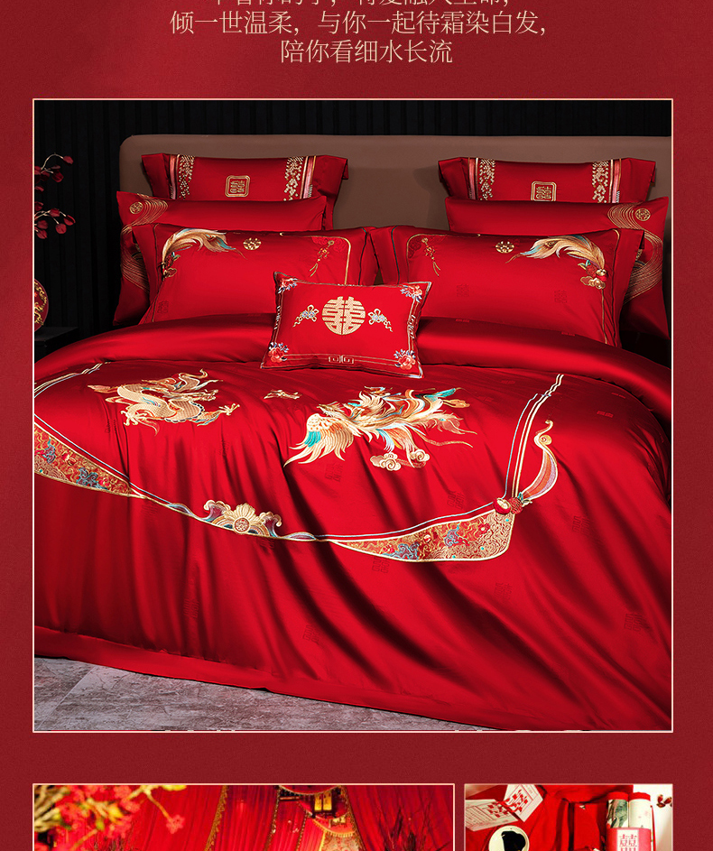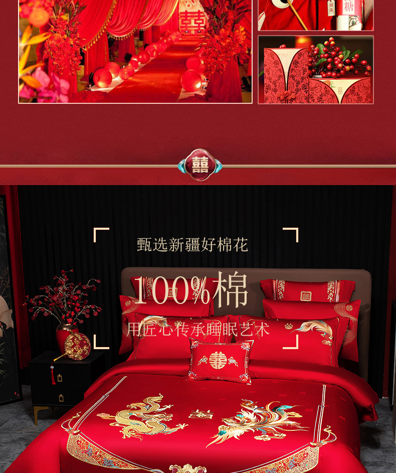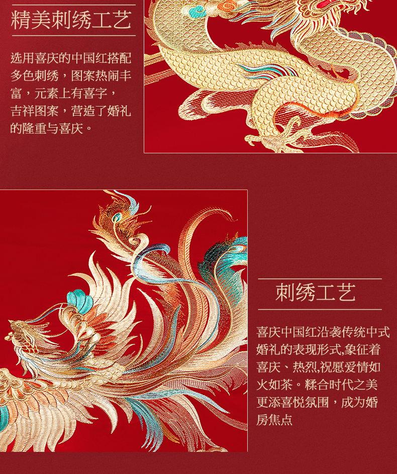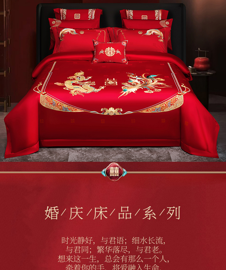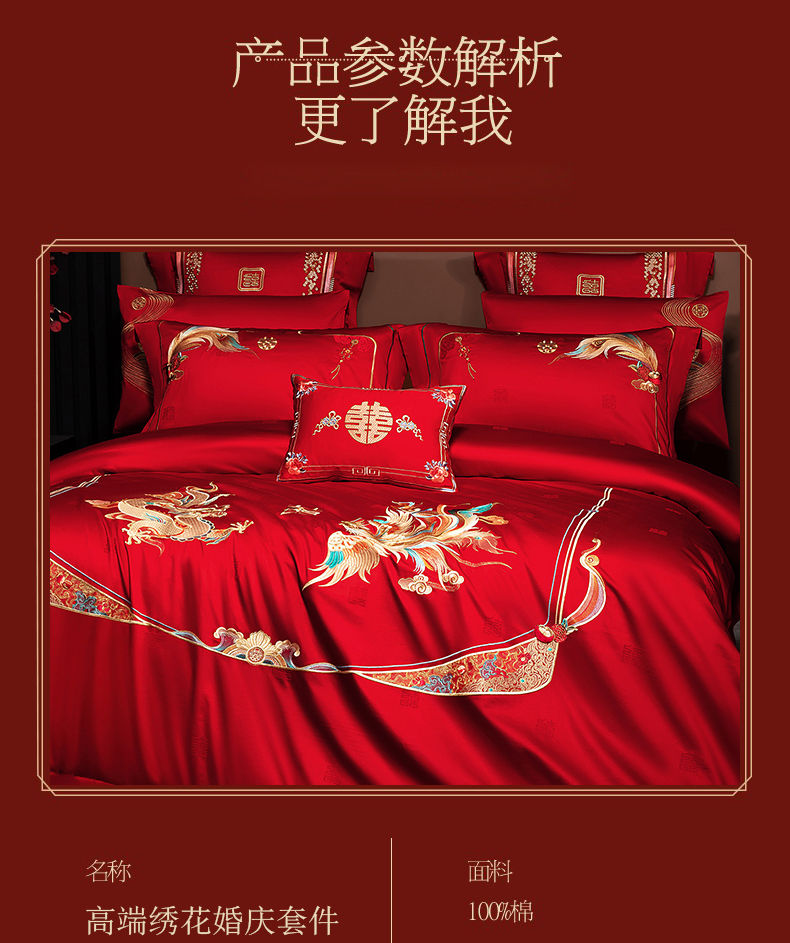 当前位置: 91家纺网 > 商品网购 > 床品套件 > 四件套 > 婚庆四件套 > 蒂爵 2026年重绣性价比款长绒棉提花全棉纯棉绣花婚庆四件套多件套大红色刺绣结床上用品 龙凤佳缘
