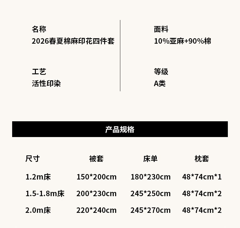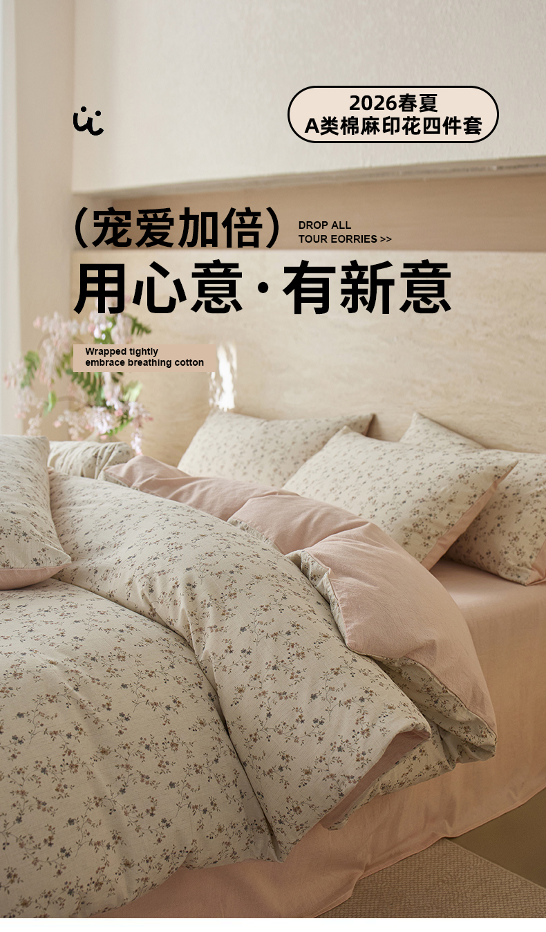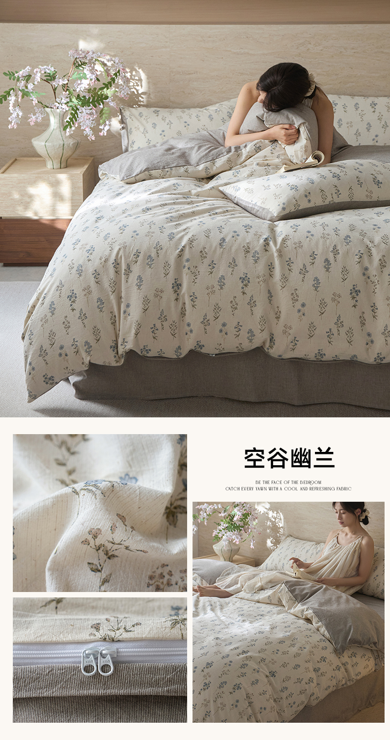 当前位置: 91家纺网 > 商品网购 > 床品套件 > 四件套 > 棉麻四件套 > 亿梵家居 2026春夏新款A类棉麻印花四件套 浅夏微风