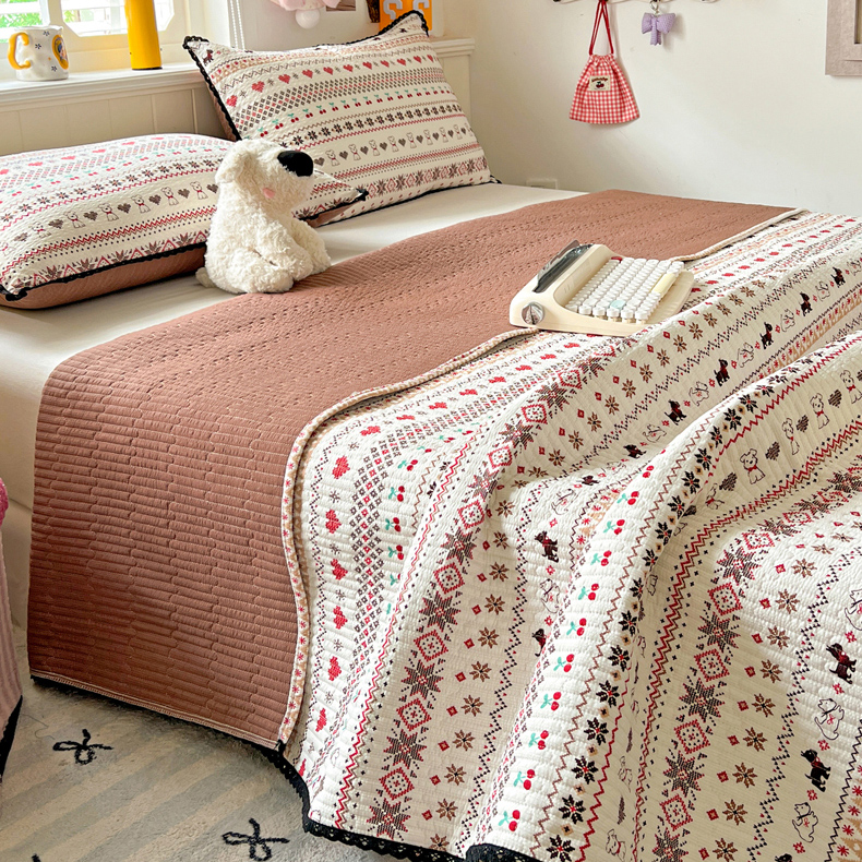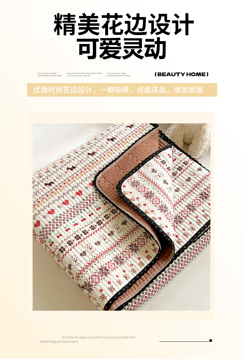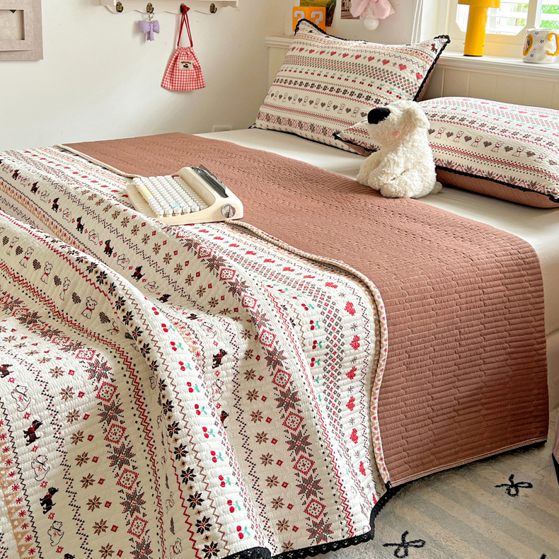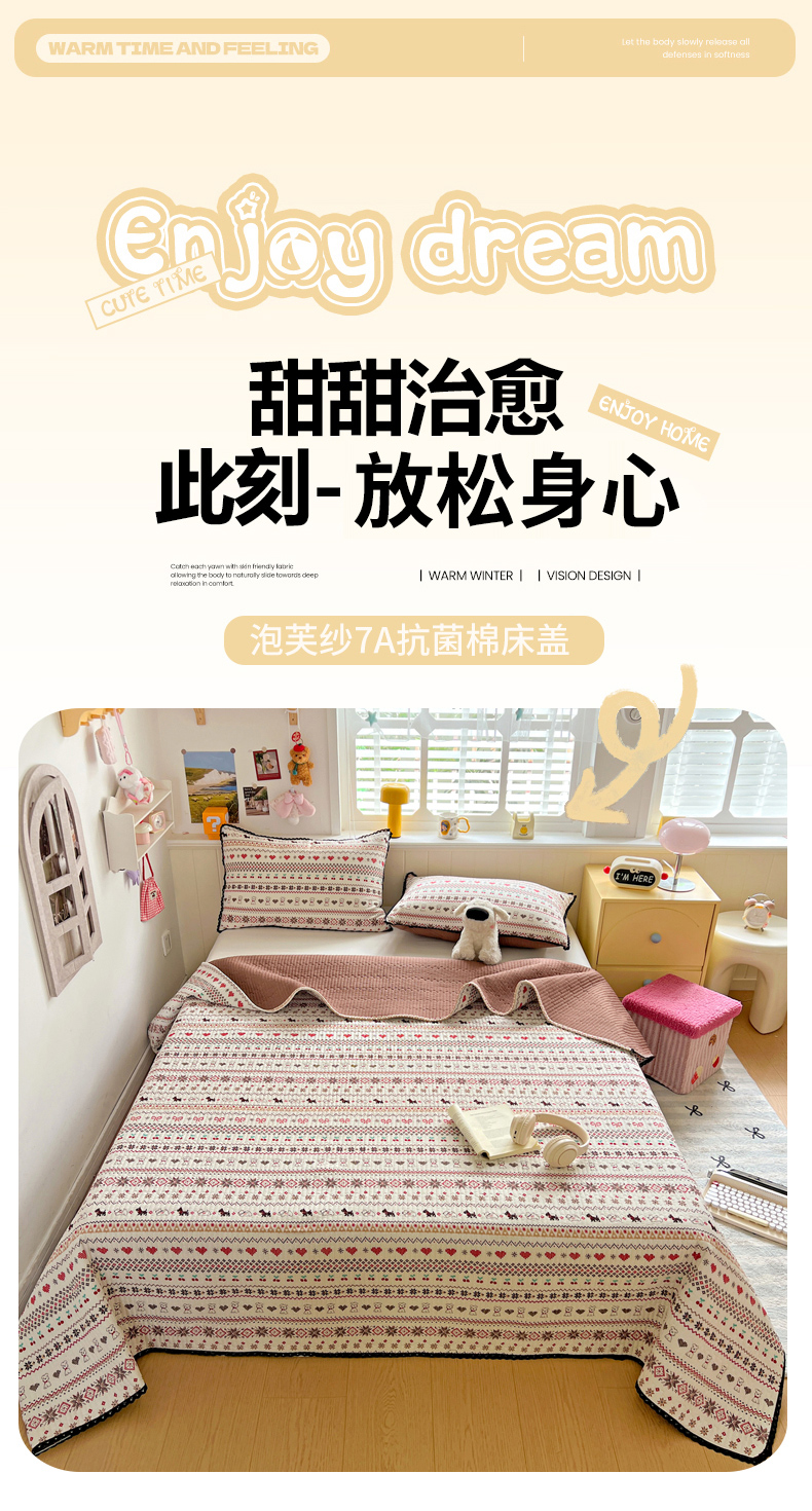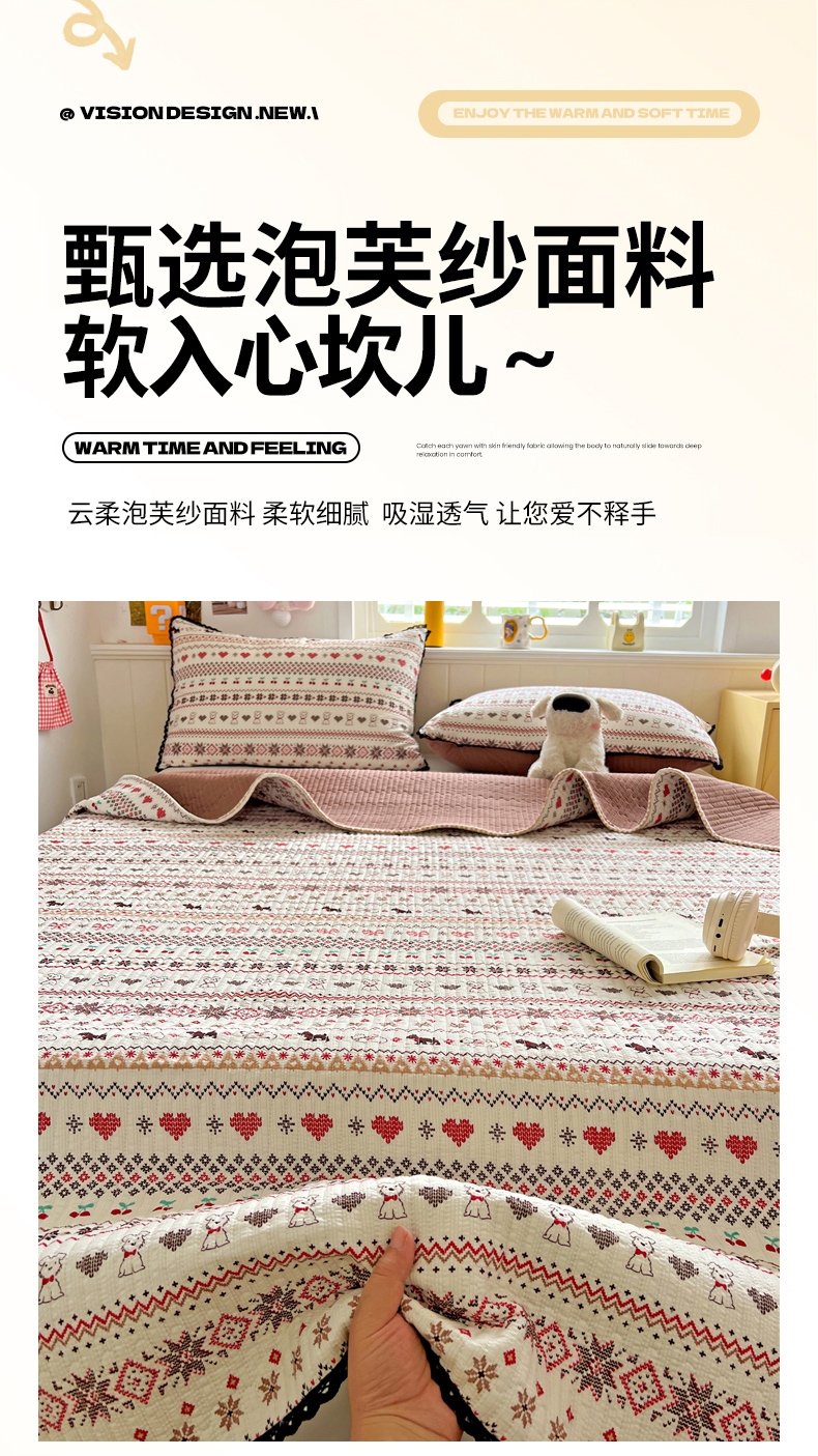 商品名称:恒尚居 2026新款A类泡芙纱床盖四套件泡芙棉双层纱小花边床垫床褥 费尔岛小狗小花边