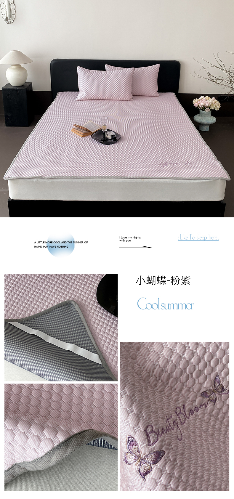 (总)云栖家居 2026新款春夏凉豆豆PE冰感凉席席子三件套软平席-小蝴蝶,浅灰,粉紫,浅蓝,组合图仅供展示不可下单,包装仅供展示不可下单