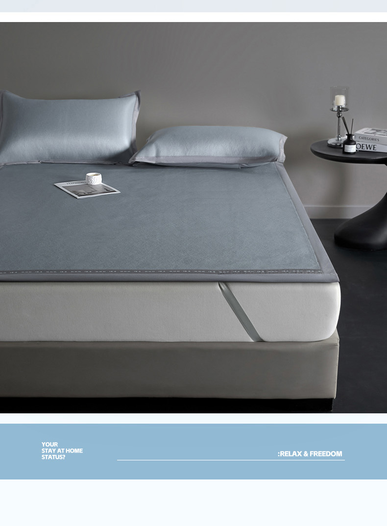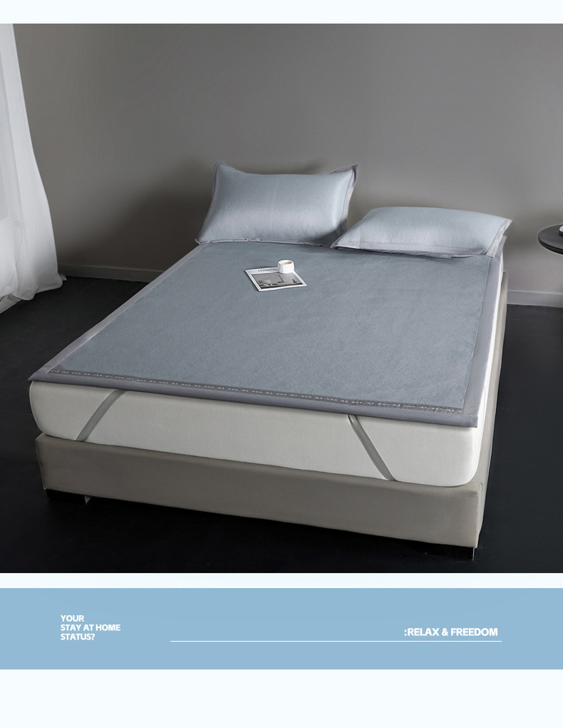 (总)印季家纺 2025新款纯色加密冰藤床裙凉席,粉色,灰色,咖啡,浅紫,水绿,天蓝