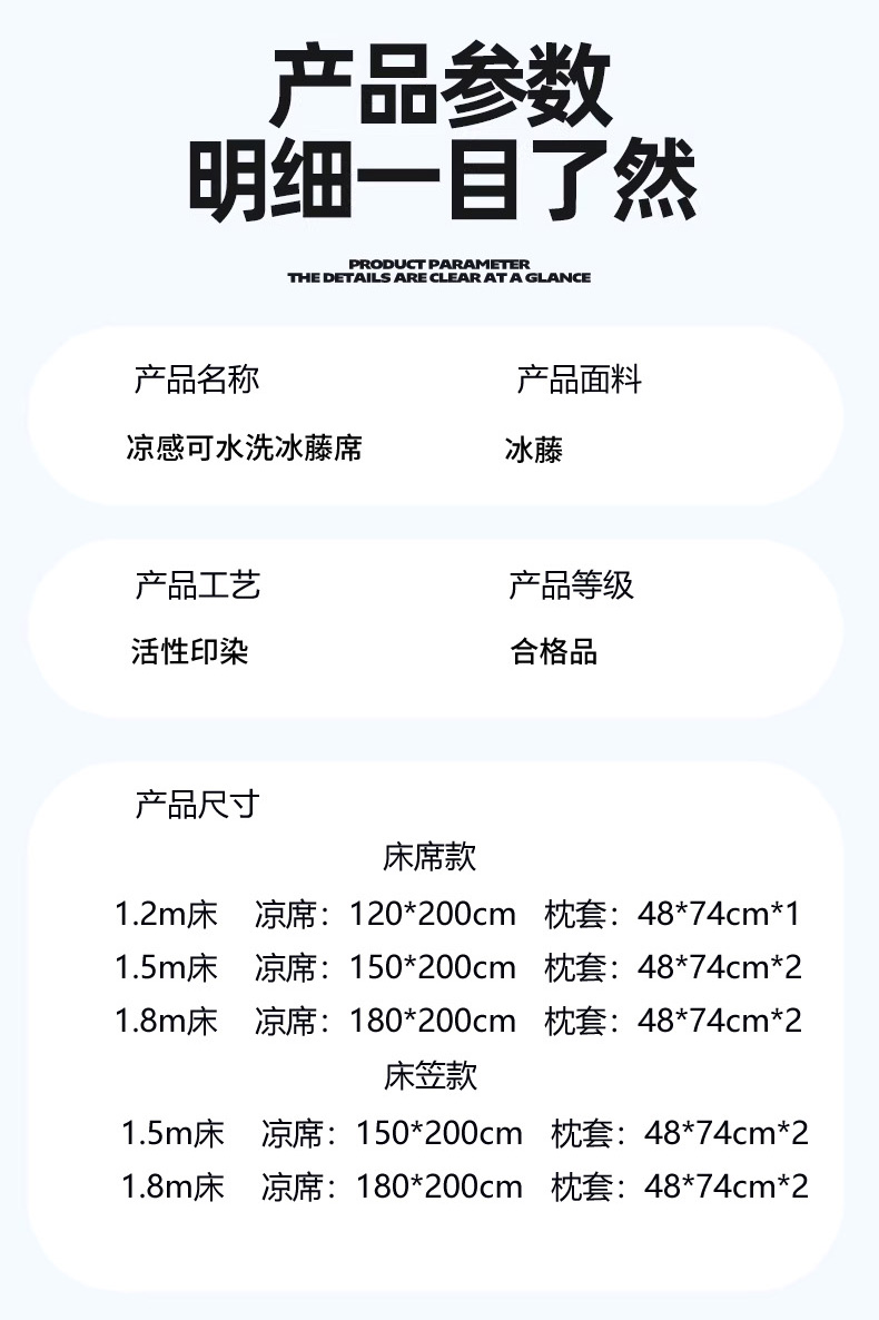 商品名称:(总)印季家纺 2026新款可水洗织带款凉感冰藤软席