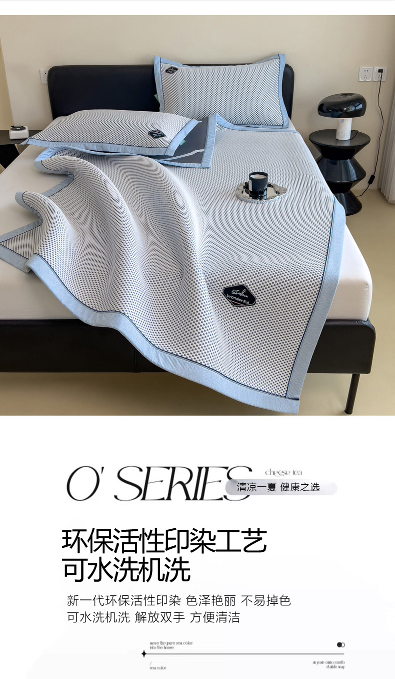 (总)印季家纺 2025新款轻奢简约凉感丝泡泡席-格调凉席,藏蓝,米黄,墨绿,浅粉,银灰