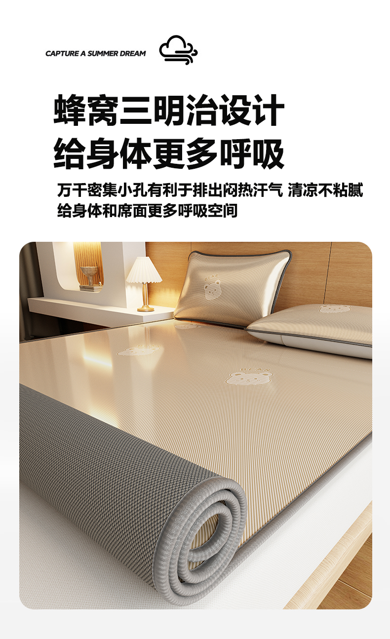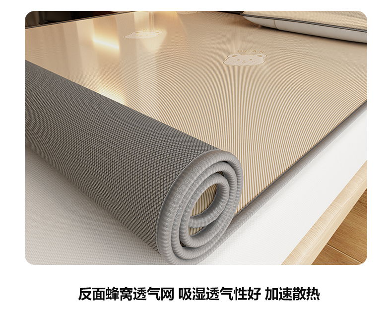• 91家纺网 家纺一手货源 找家纺 源舍家纺 2026新款国标质检三明治复合糯叽叽冰丝软凉席成人床 冰丝熊-咖