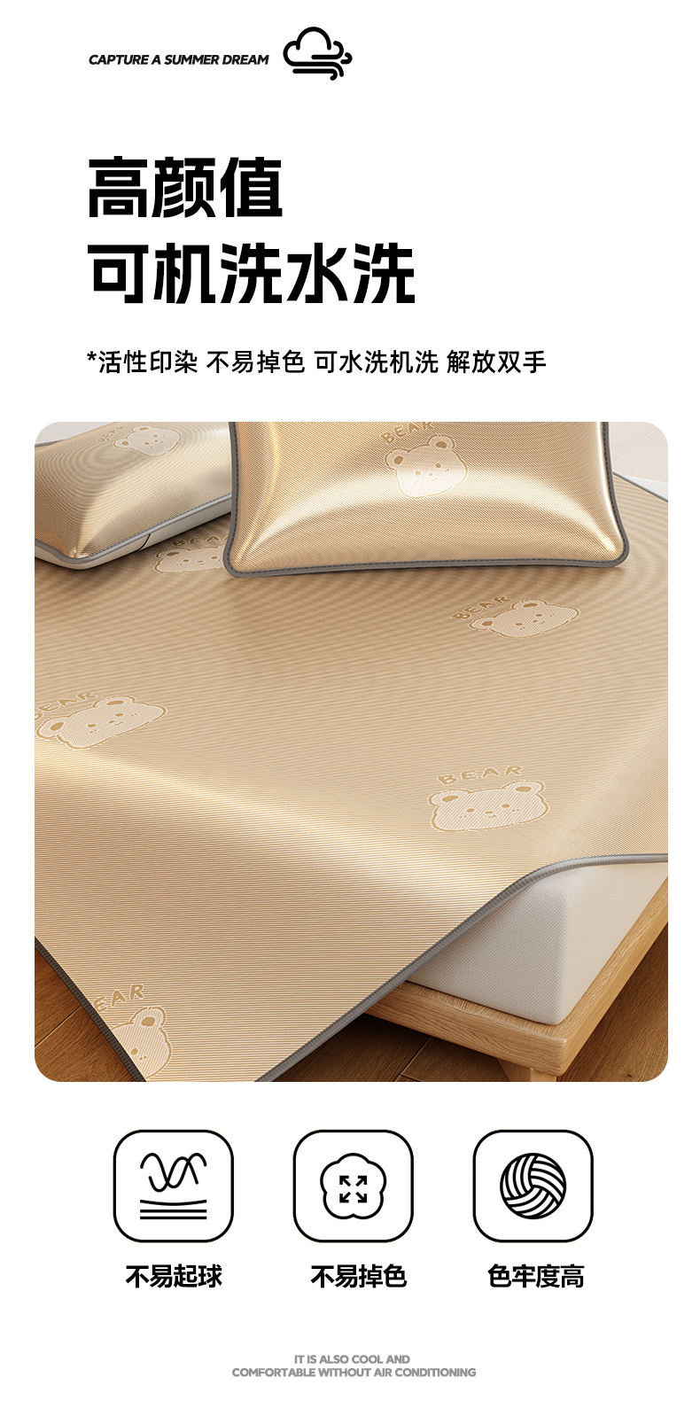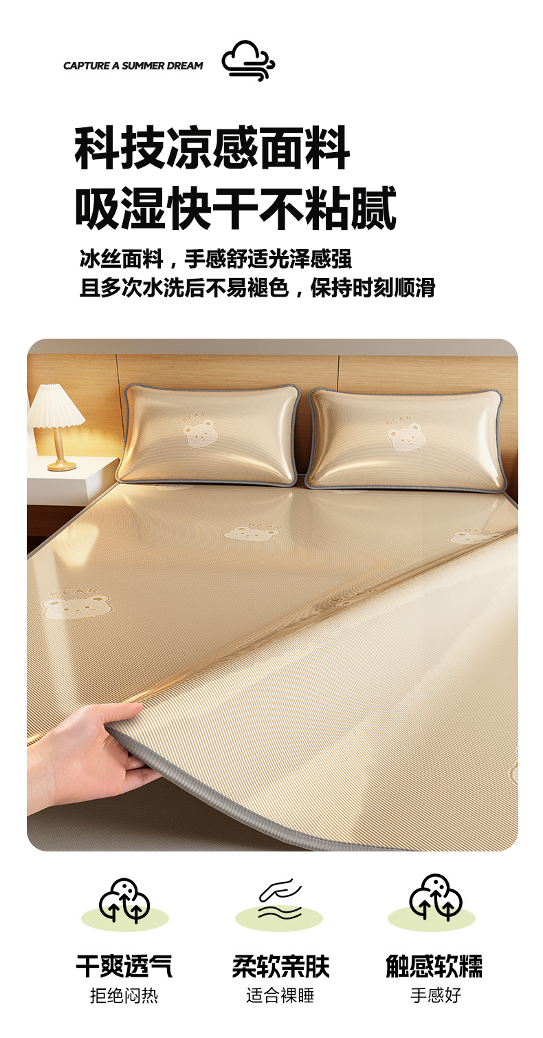 源舍家纺 2026新款国标质检三明治复合糯叽叽冰丝软凉席成人床 冰丝熊-咖