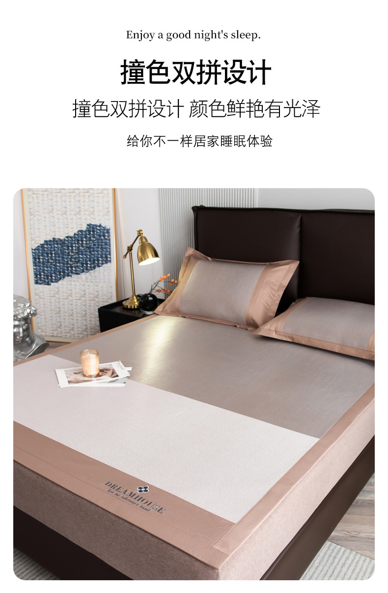 (总)印季家纺 2025新款轻奢简约凉感丝泡泡席-格调凉席,藏蓝,米黄,墨绿,浅粉,银灰
