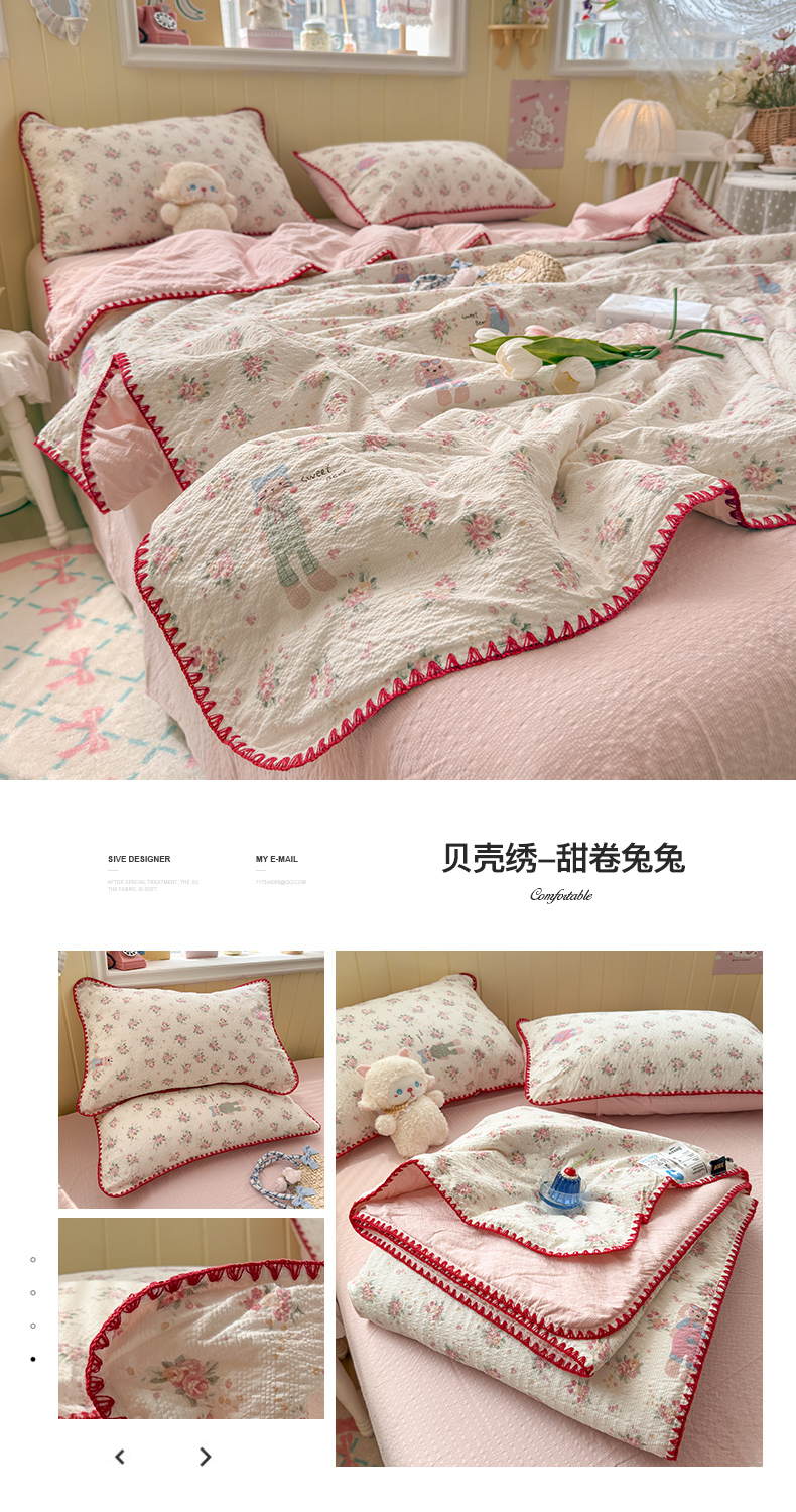 商品名称:初念 2026新款泡芙纱贝壳绣三角针夏被 提供买家秀 贝壳绣-碎花藏甜