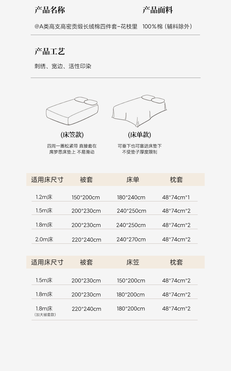 【床笠款】1.8四件套-被套200x230 | ¥195.00 |