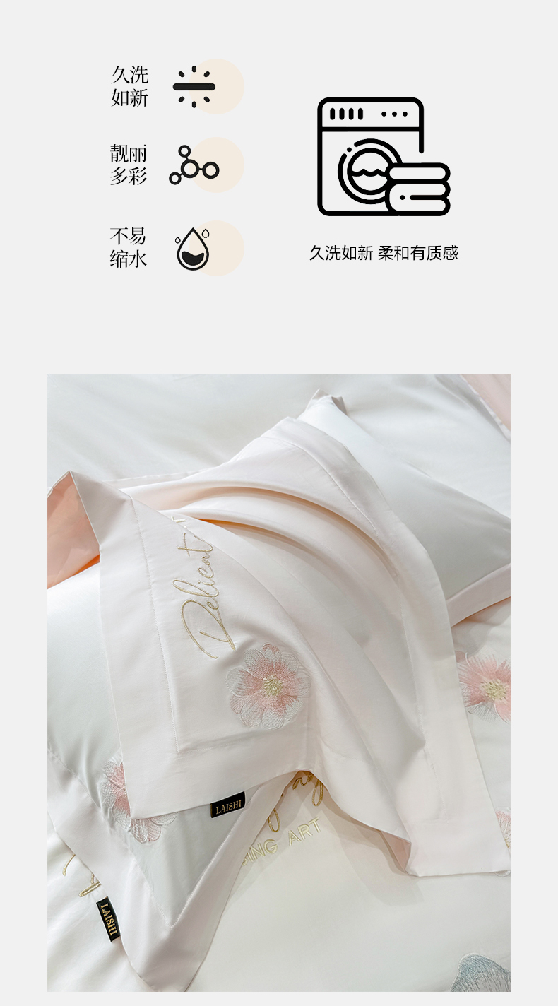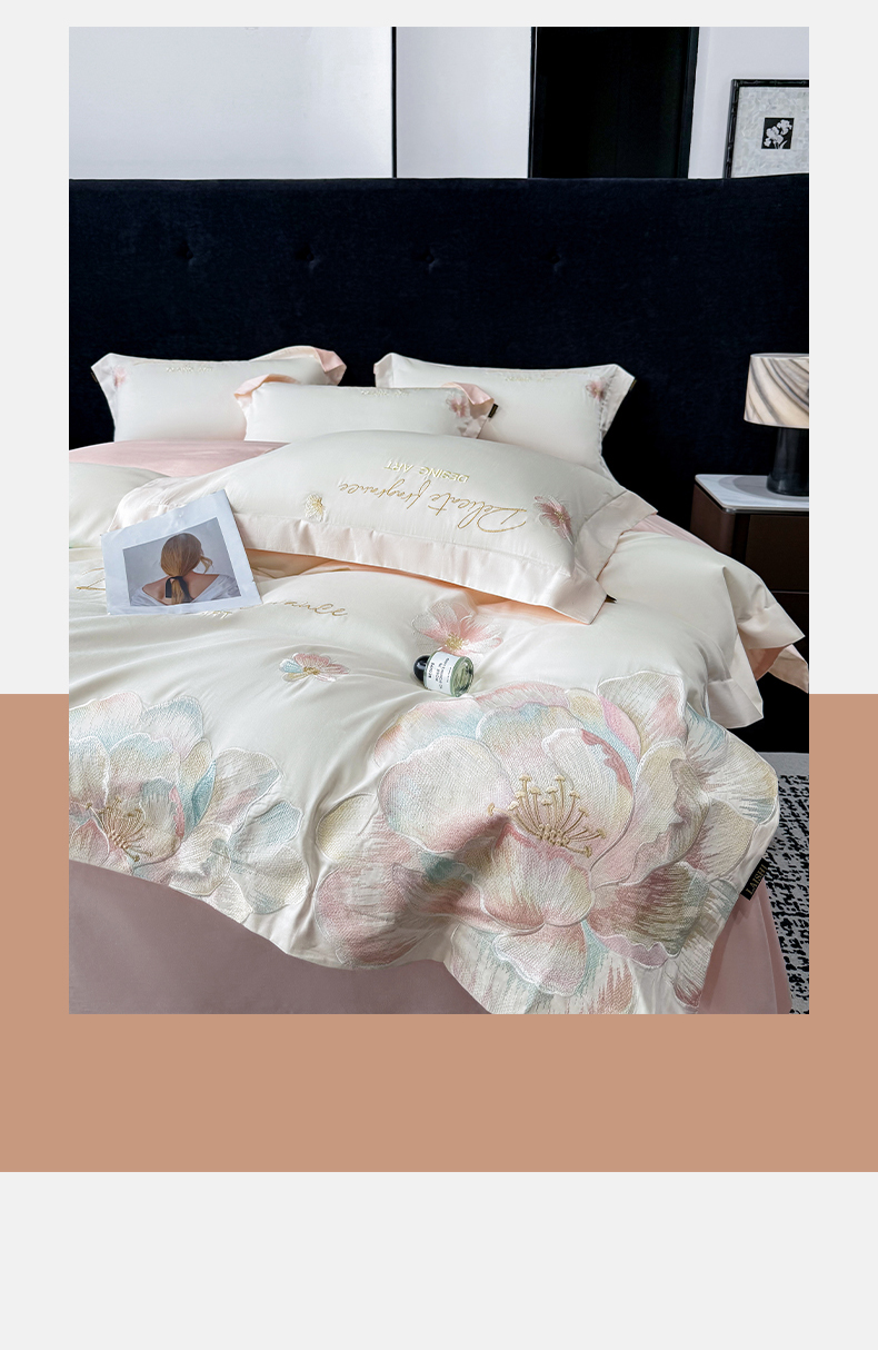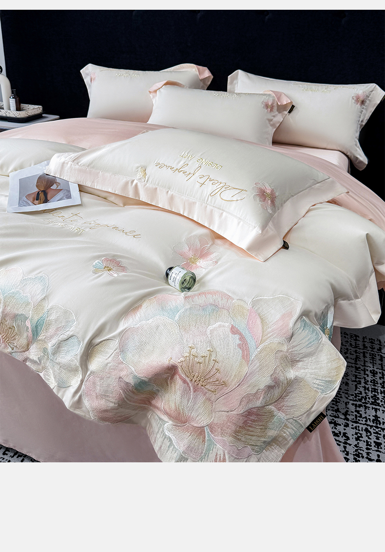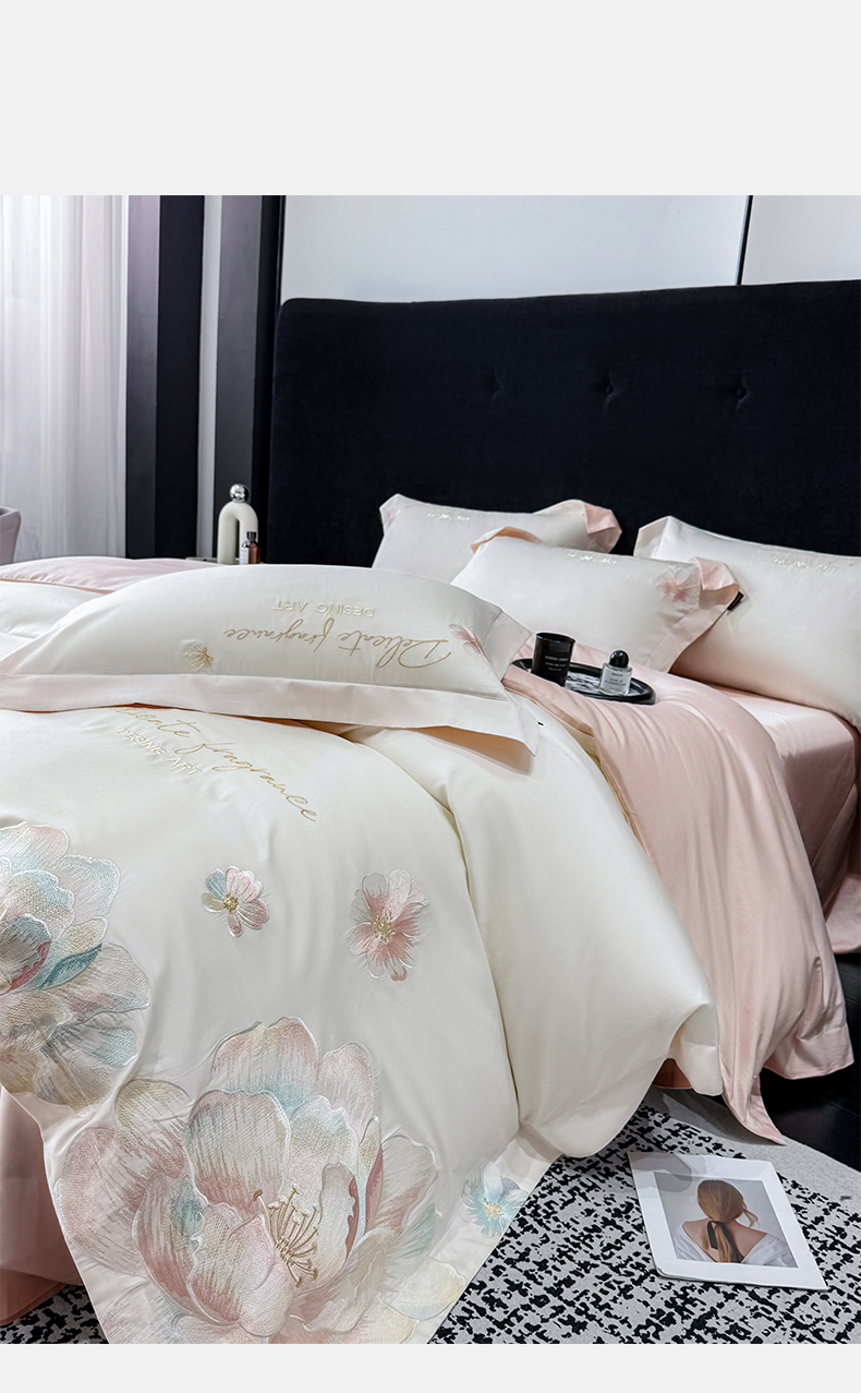 当前位置: 91家纺网 > 商品网购 > 床品套件 > 四件套 > 长绒棉四件套 > 欣宜家纺 2026春夏新款A类50支贡缎长绒棉纯棉刺绣轻奢绣花四件套-花枝里 花枝里 白拼粉