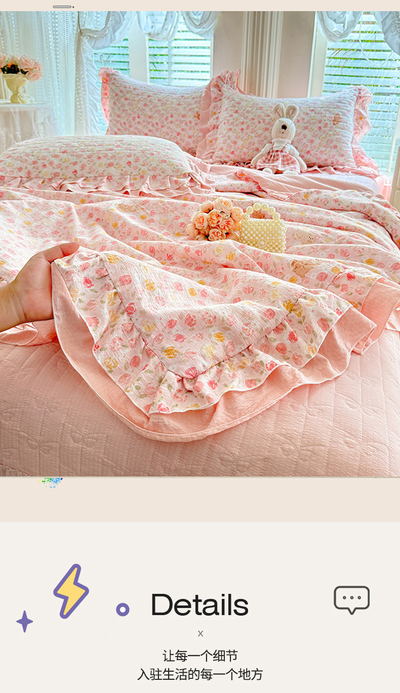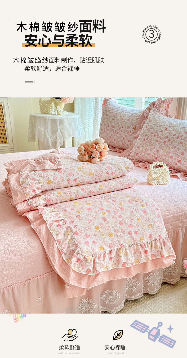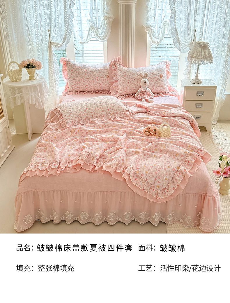 商品名称:苏米娜家纺 2026新款韩版双层花边木棉皱皱纱夏被床盖款四件套-小清新系列 清新花语