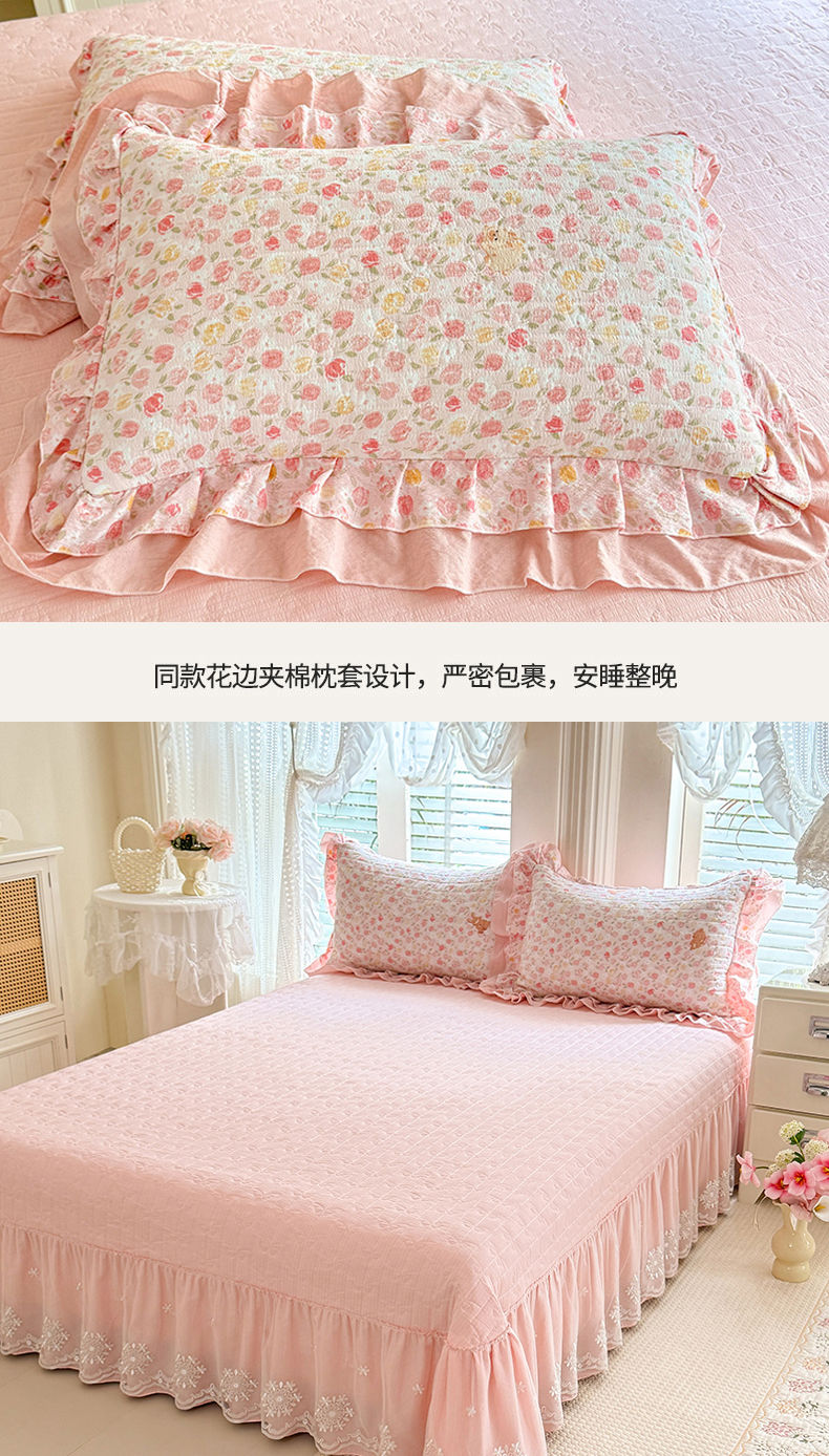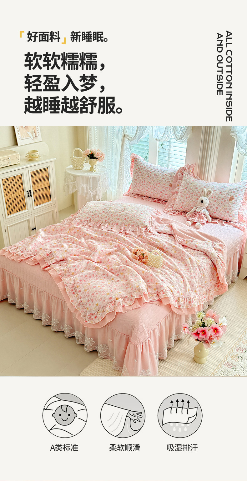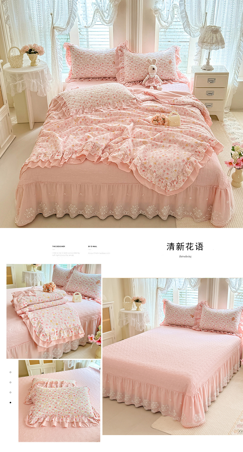 商品名称:苏米娜家纺 2026新款韩版双层花边木棉皱皱纱夏被床盖款四件套-小清新系列 清新花语