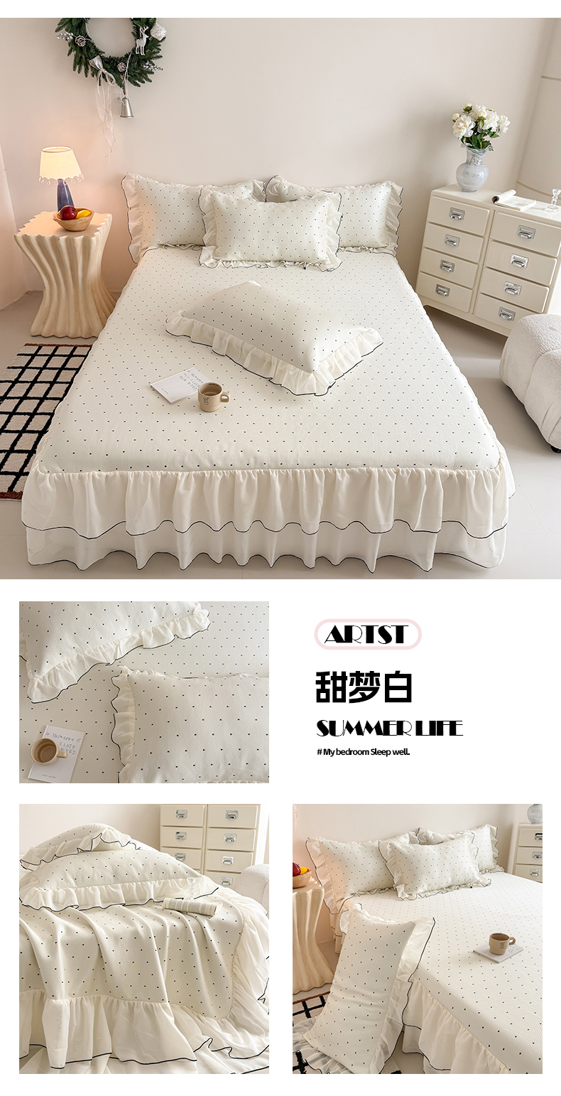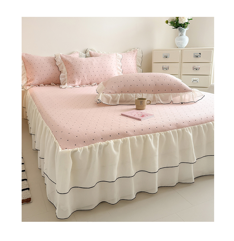 • 91家纺网 家纺一手货源 找家纺 吾欢心 2026夏季新款甜梦系列PE凉感提花凉席430克高克重蕾丝床裙款冰丝软席三件套 甜梦黑