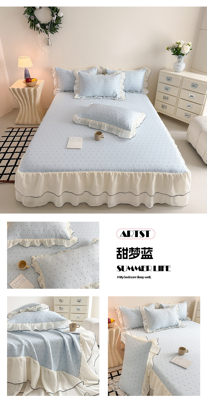 • 91家纺网 家纺一手货源 找家纺 (总)吾欢心 2026新款卡通贴布刺绣高克重乙纶PE凉席席子三件套床裙款,旋转木马白,旋转木马粉,旋转木马蓝,组合图仅供展示不可下单
