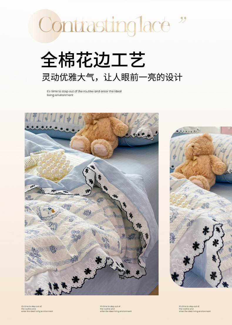 (总)恒尚居 2026新款A类泡芙纱花边夏被夏凉被空调被四套件